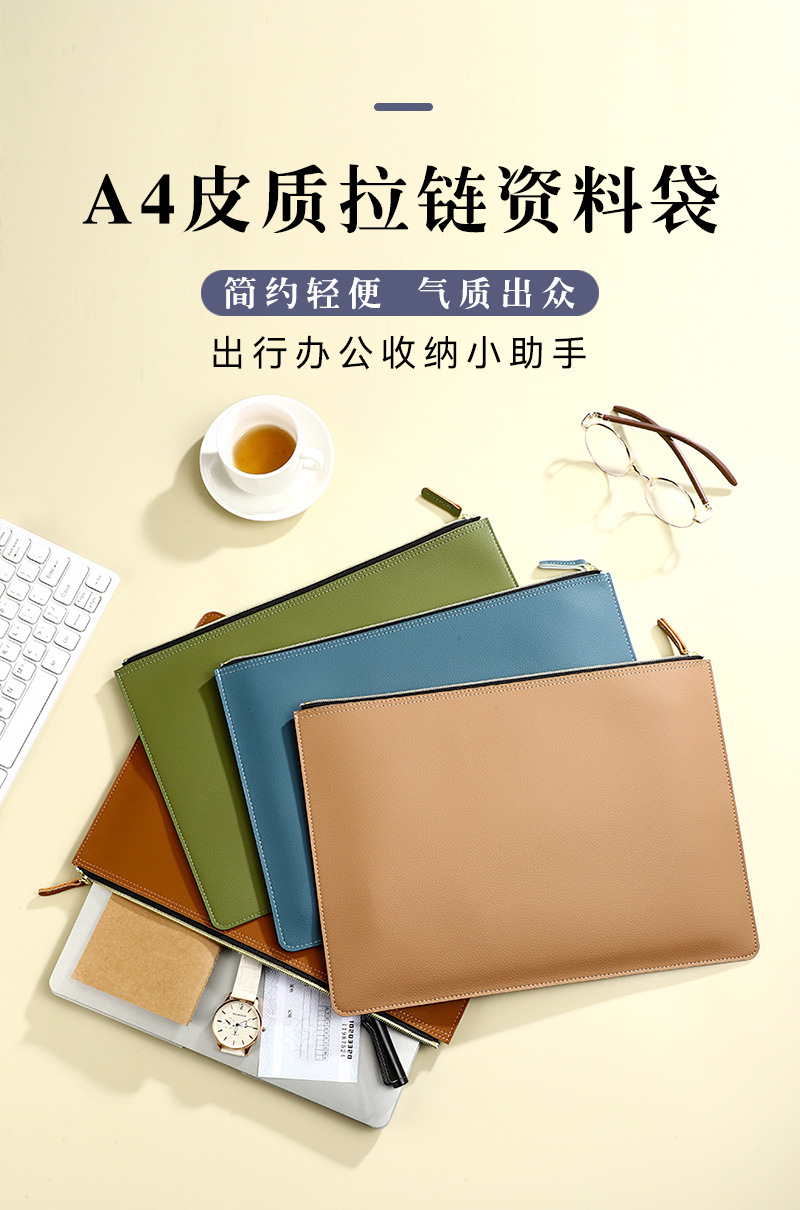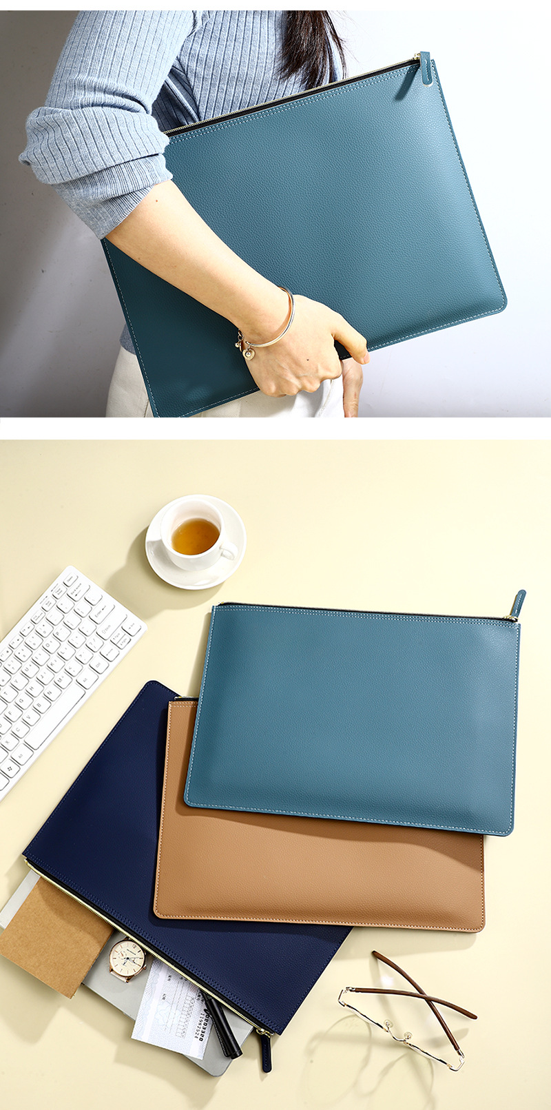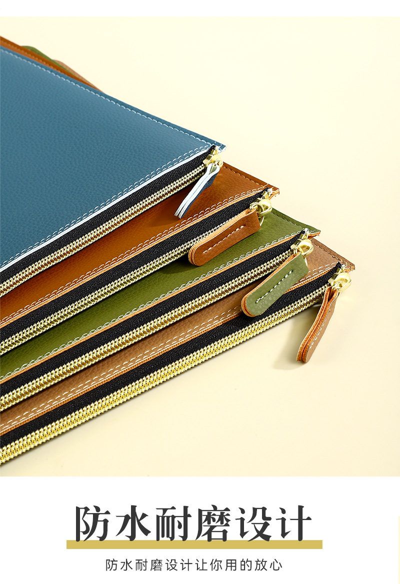 A4 파일 가방 가죽 서류 가방 회의용 수납 가방 고급 방수 보험 서류 홀더 크로스보더 PU 지퍼 가방