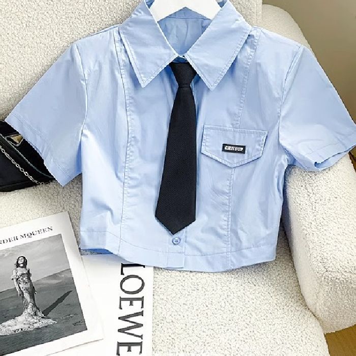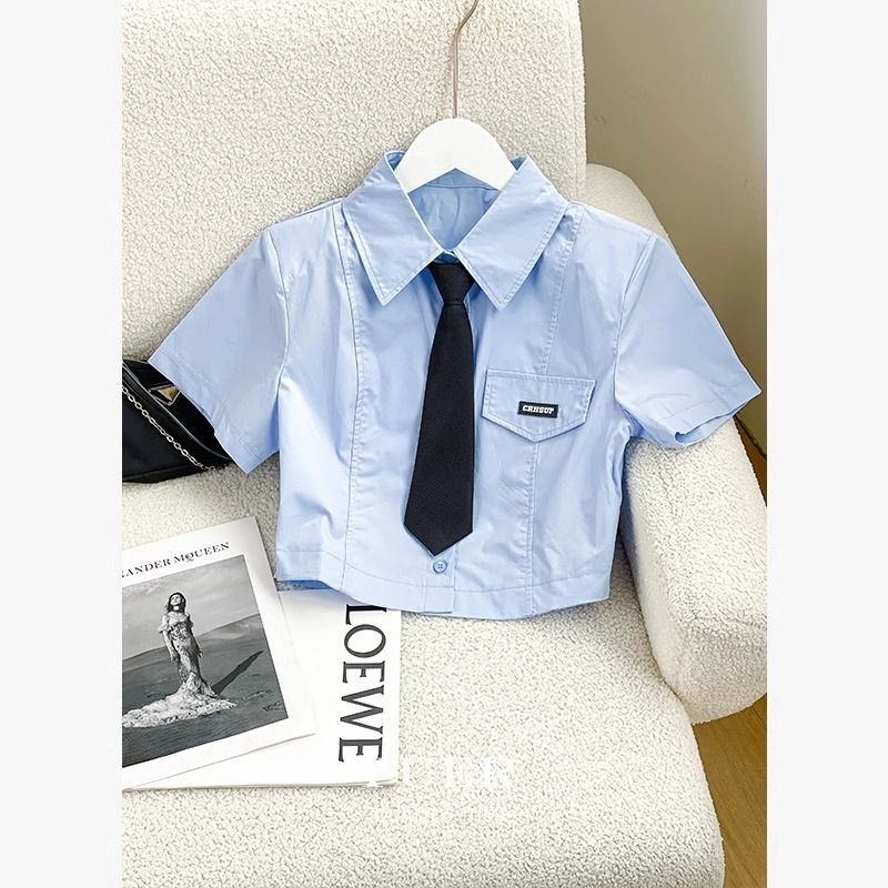 대학 스타일 짧은 소매 셔츠 여성의 여름 Jk 유니폼 학생 폴로 타이 블루 셔츠 달콤한 쿨 쇼트 탑