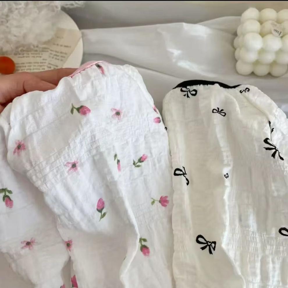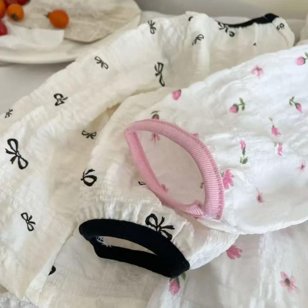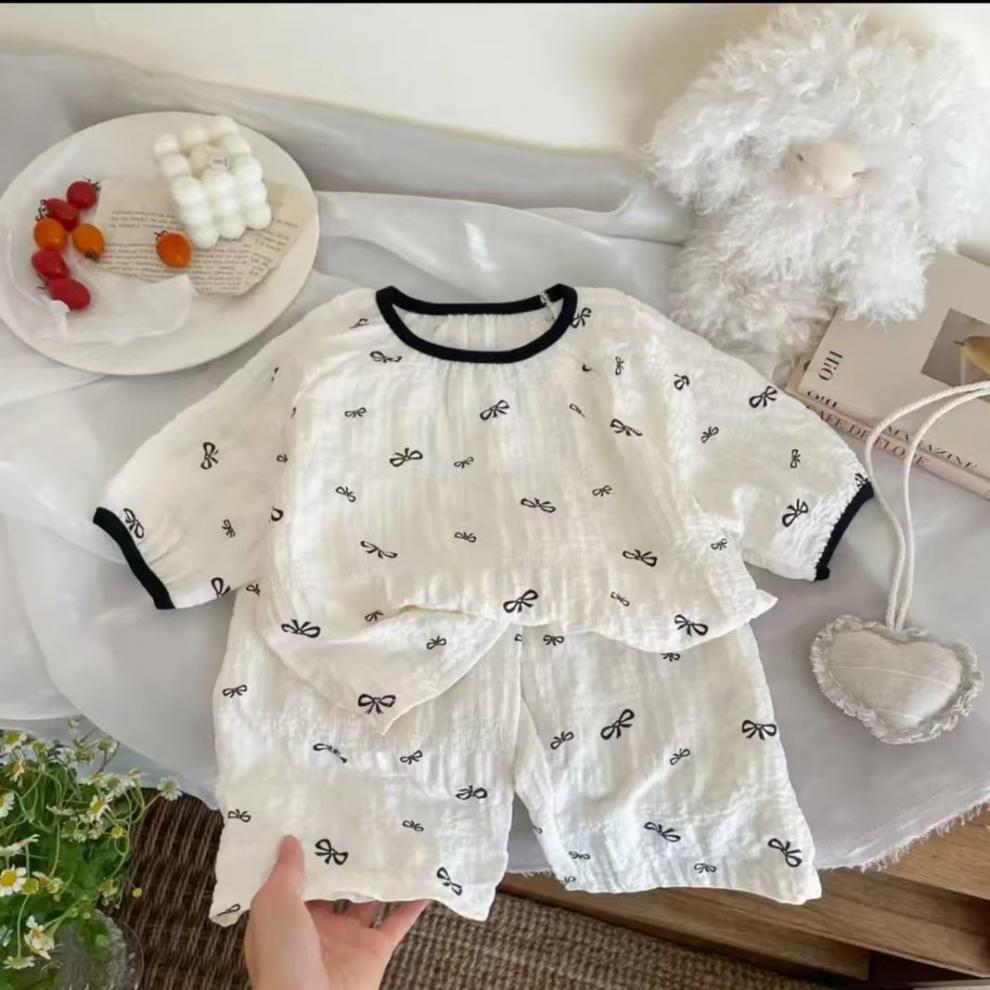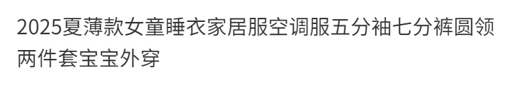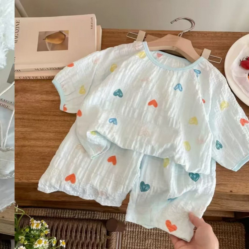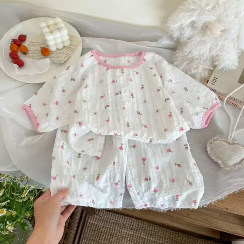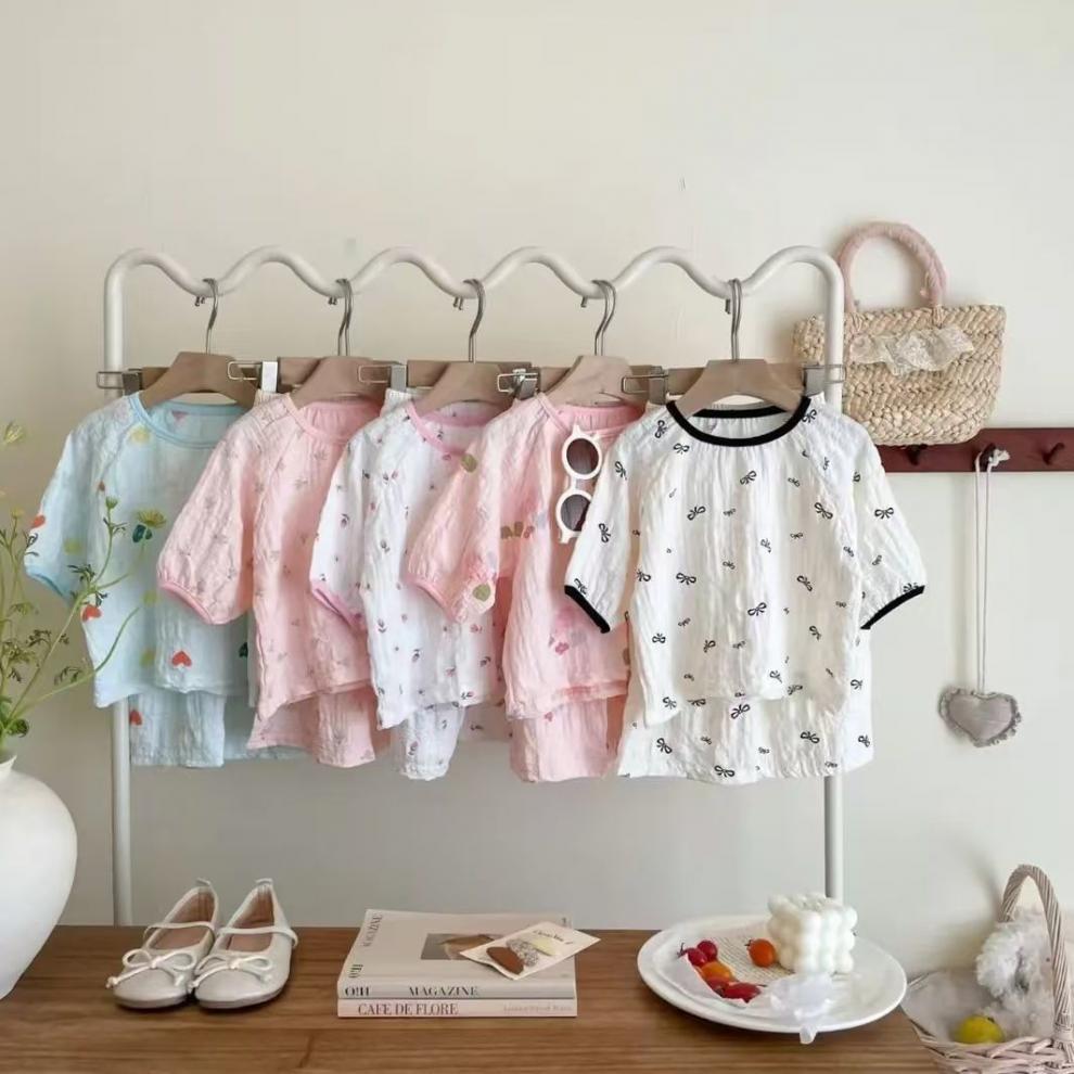 2025 여름 얇은 여아 잠옷, 가정복, 에어컨 의류, 7부 소매, 7부 바지, 라운드 넥 투피스 세트, 베이비 아우터스토어 가기
