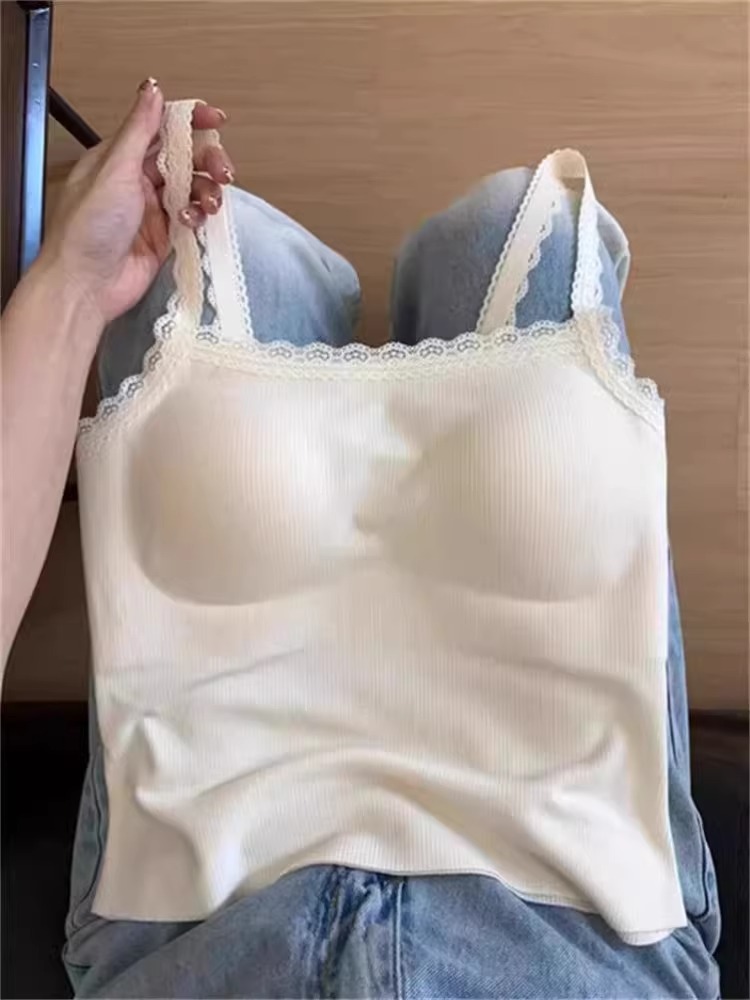 화이트 스퀘어 칼라 독특한 아름다운 레이스 벨트 가슴 패드 카미 솔 여성용 슈퍼 아름다운 내베이스 슬림 핏 작은 탑