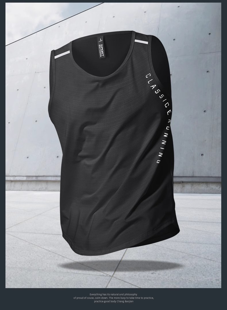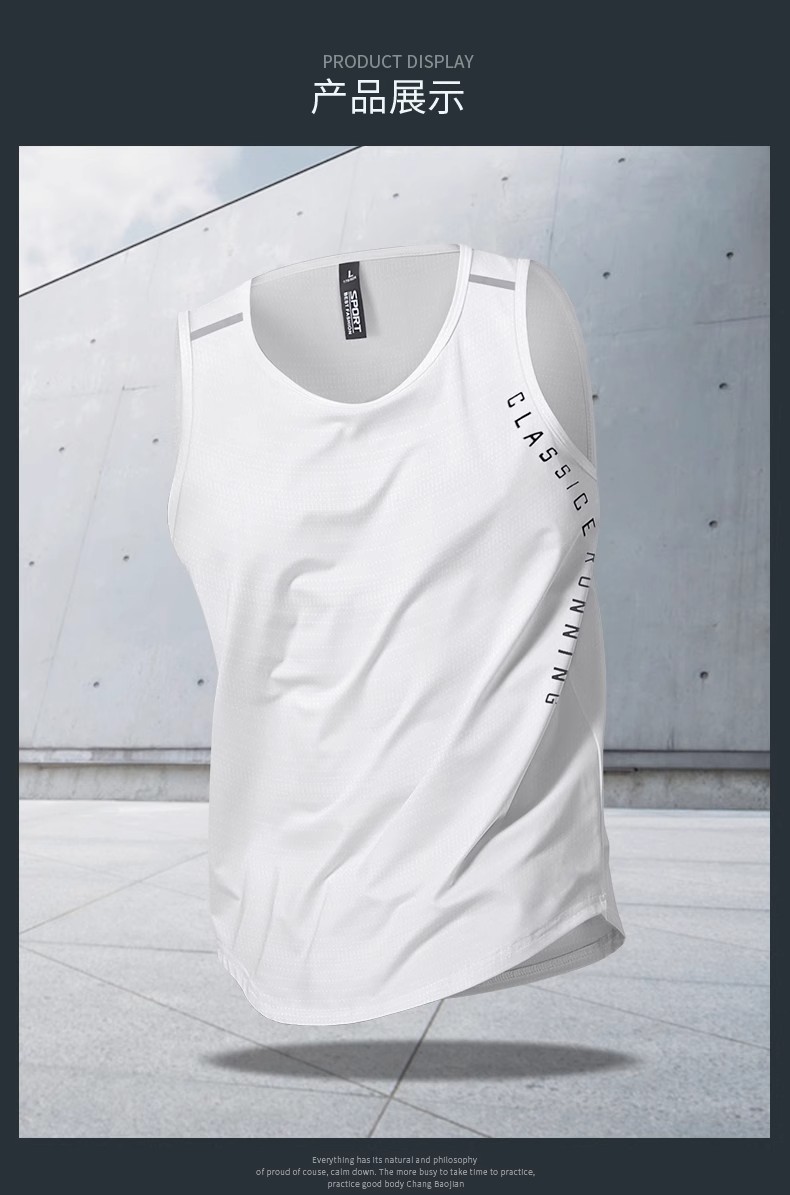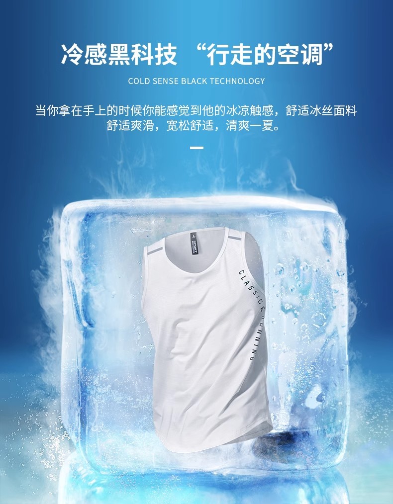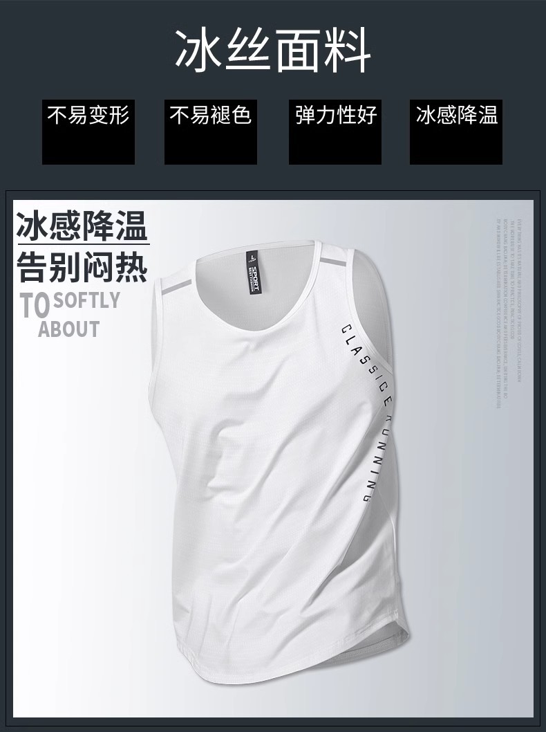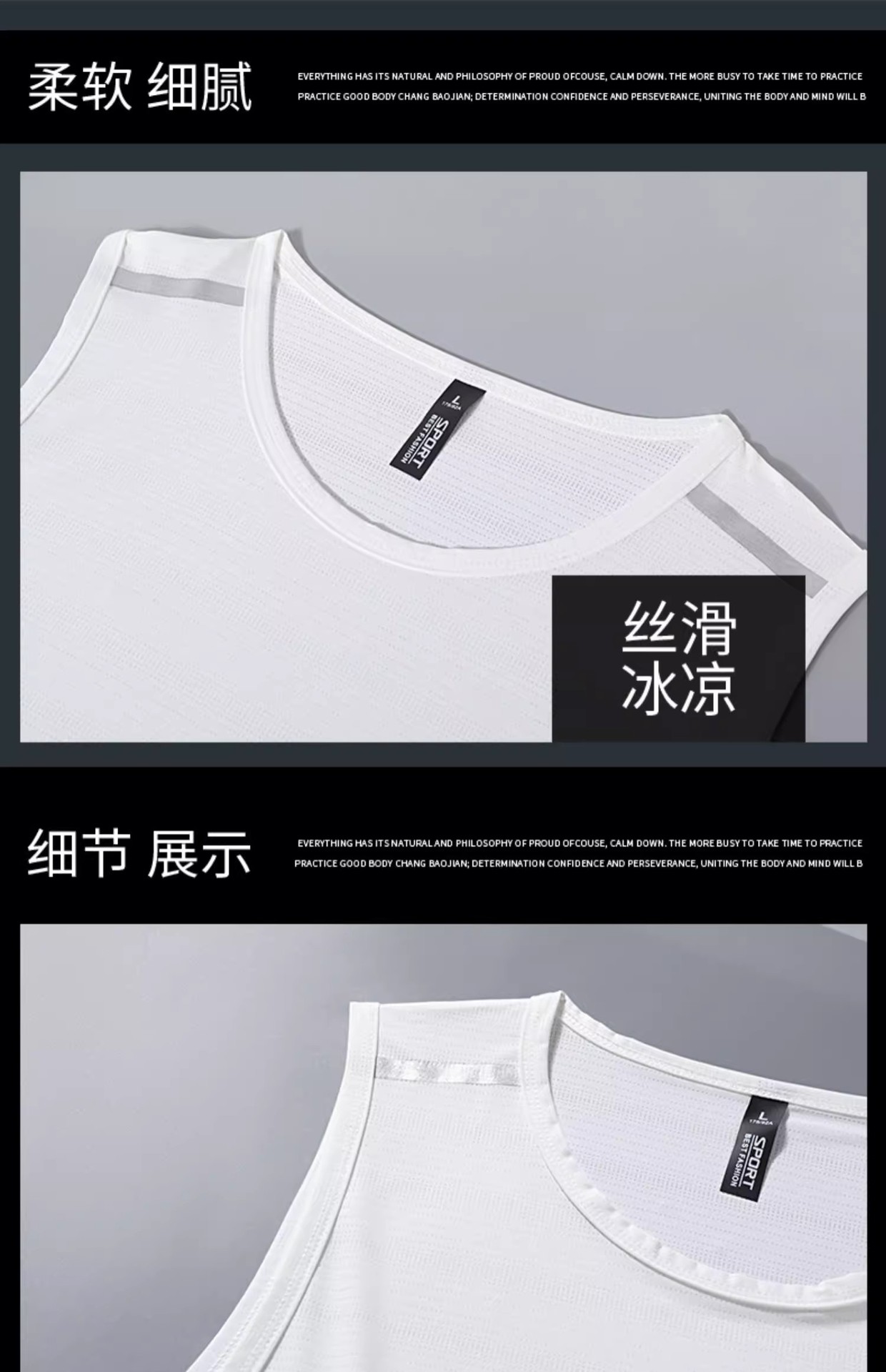 스포츠 조끼 남자 피트니스 여름 얼음 실크 탑 러닝 민소매 속건성 조끼 느슨한 농구 훈련 티셔츠