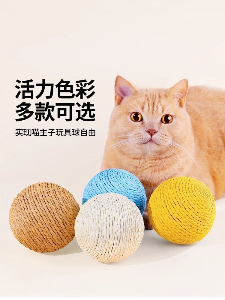 고양이 장난감 소나무 섬유 공 대형 8CM 자기 자극 및 지루함 해소 유물 고양이 놀리는 스틱 치아 연삭 물림 방지 소리 공 고양이 용품스토어 가기