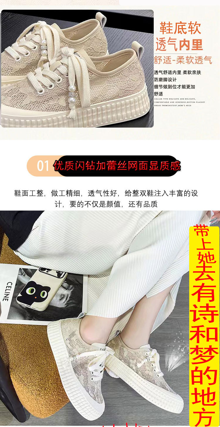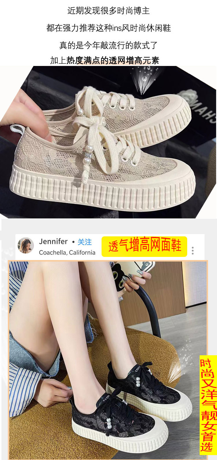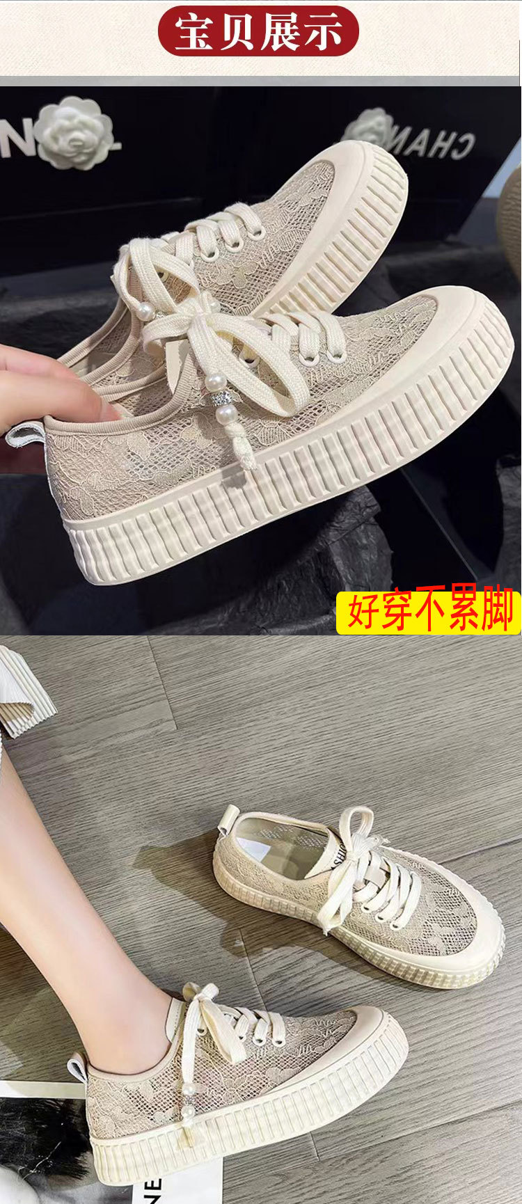 2025 여름 새 스타일 통기성 어부 신발 여성 Ins 상승 소프트 하단 레이스 스포츠 캐주얼 구슬 빈 신발
