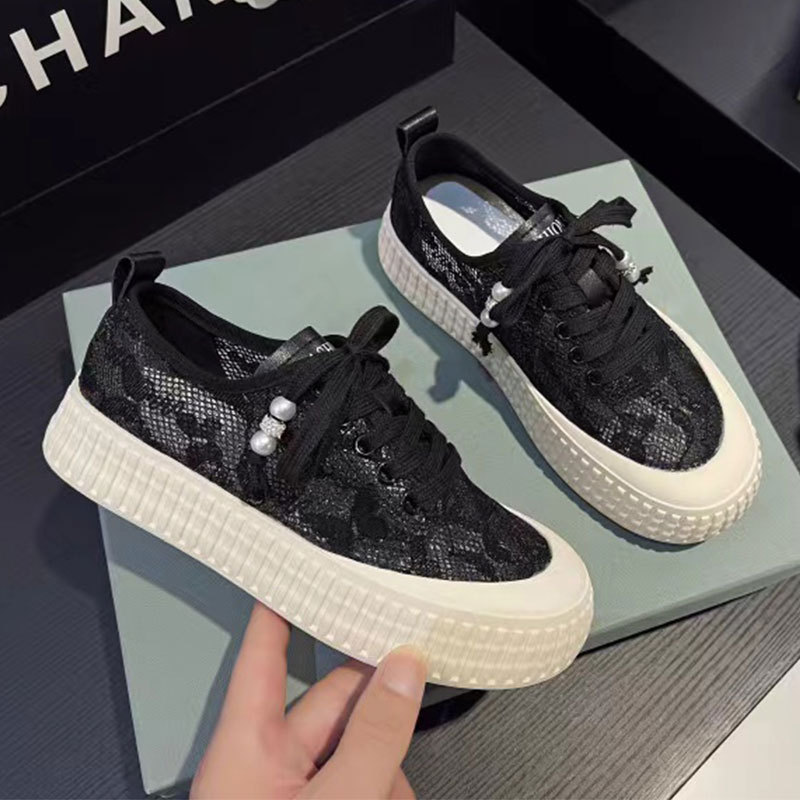 2025 여름 새 스타일 통기성 어부 신발 여성 Ins 상승 소프트 하단 레이스 스포츠 캐주얼 구슬 빈 신발스토어 가기