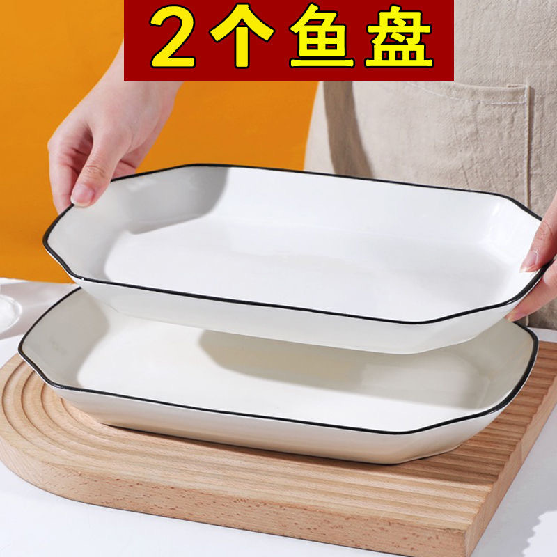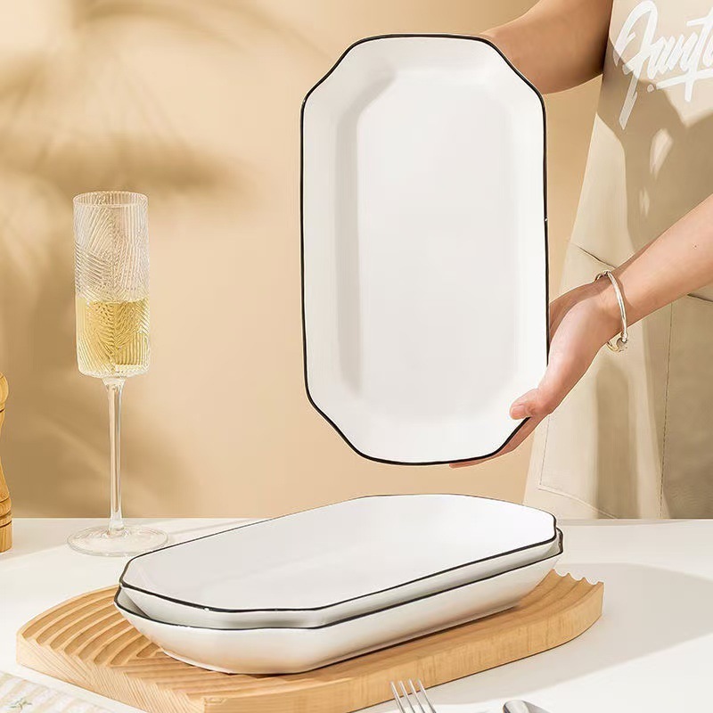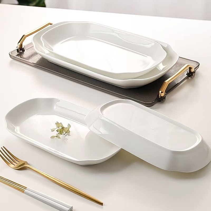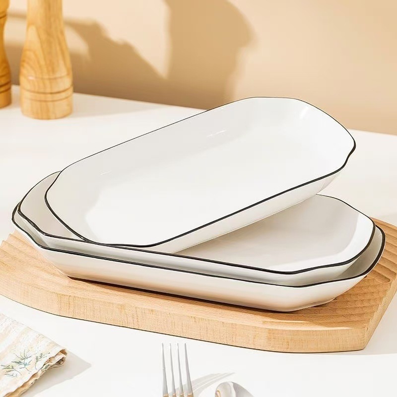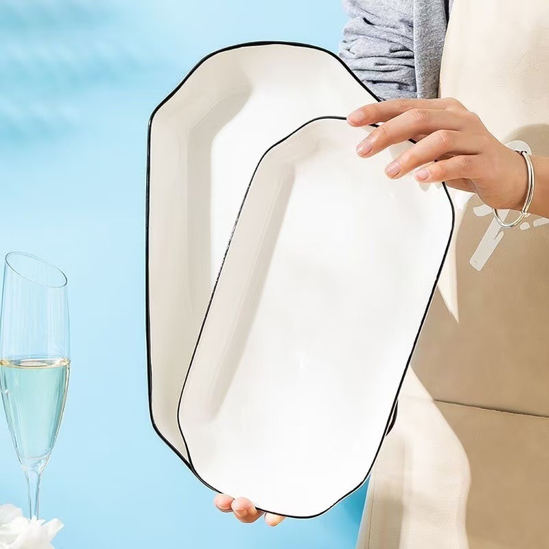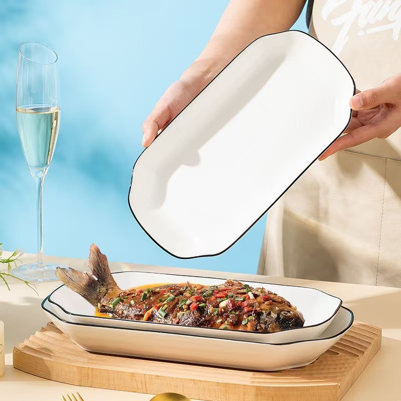 슈퍼 저렴한 클리어런스 새로운 스타일 가정용 세라믹 Instagram 스타일 긴 사각 플레이트 고온 유약 컬러 찐 생선 접시