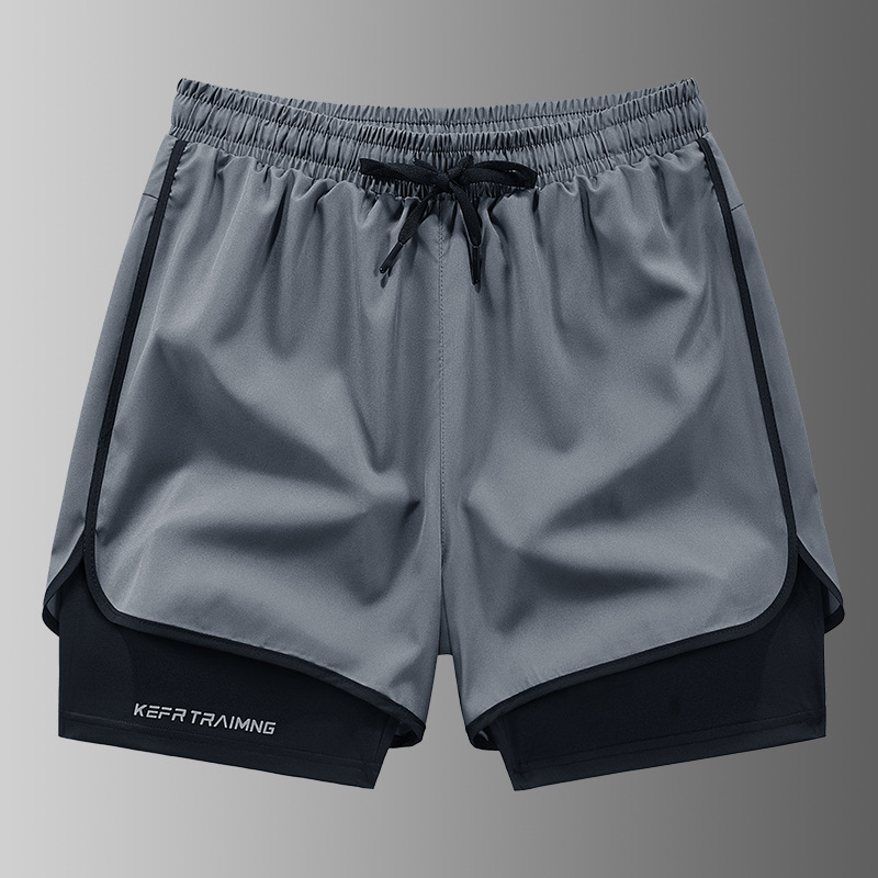 속건성 스포츠 반바지 남성 여름 육상 마라톤 러닝 피트니스 3점 바지 페이크 투피스 노출 방지 트레이닝 바지