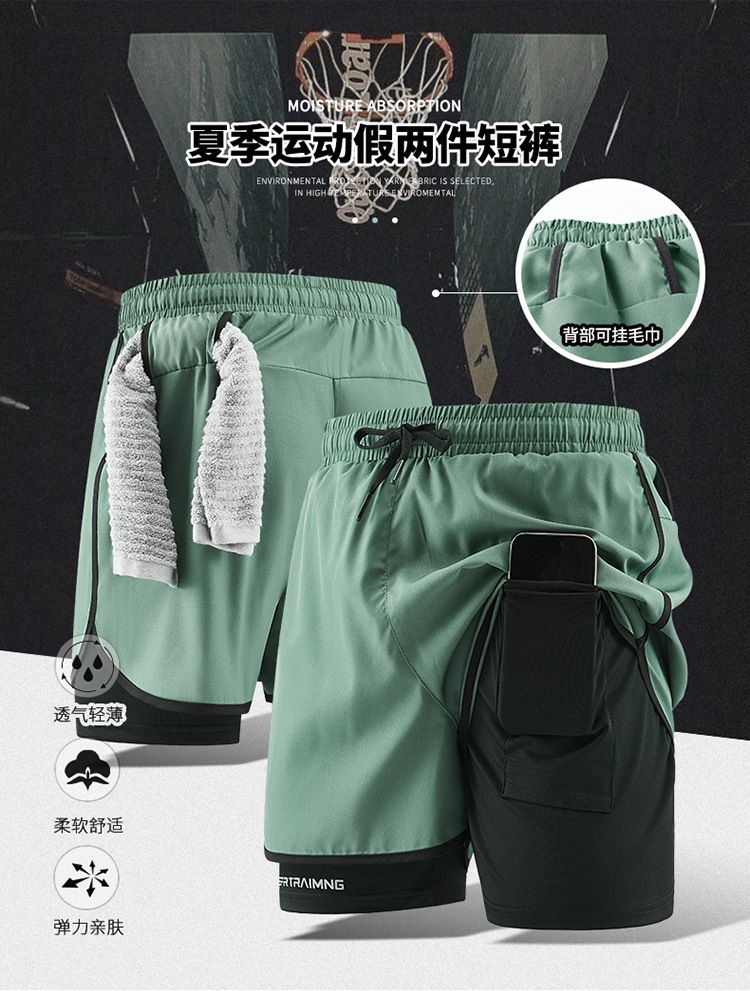 속건성 스포츠 반바지 남성 여름 육상 마라톤 러닝 피트니스 3점 바지 페이크 투피스 노출 방지 트레이닝 바지스토어 가기