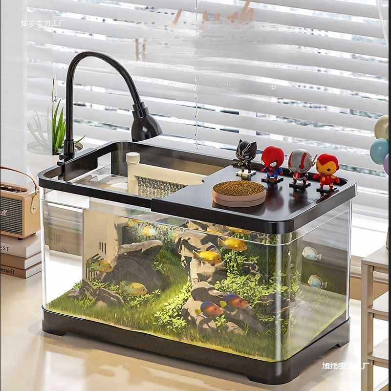 수조 수족관 데스크탑 생태 금붕어 탱크 플라스틱 투명 거실 조경 중소형 게으른 사람들의 물 교체 가정용 탱크스토어 가기
