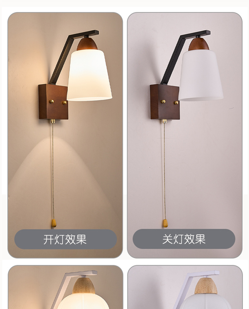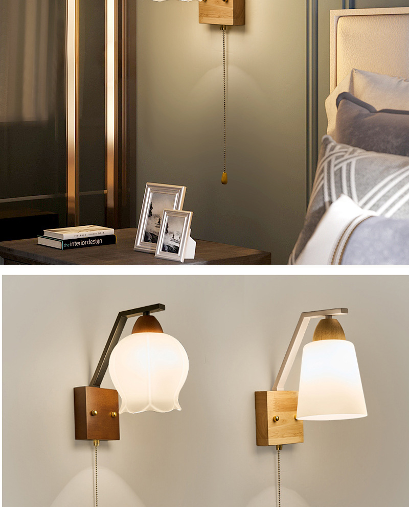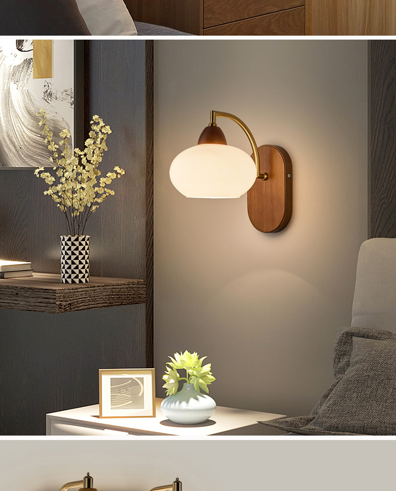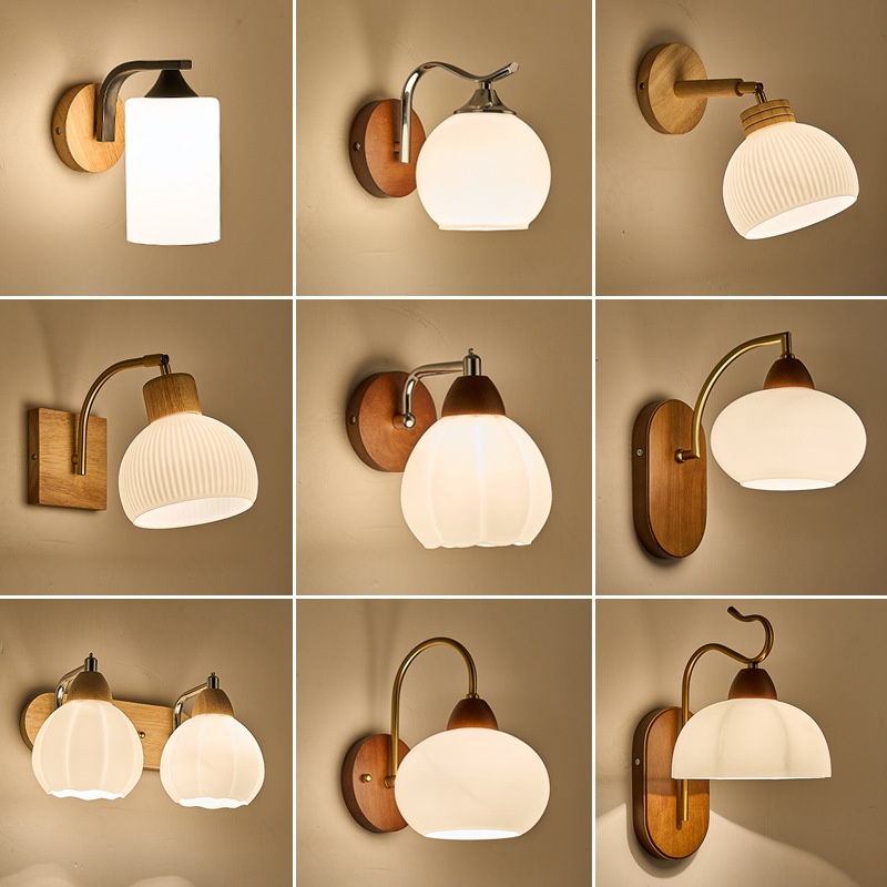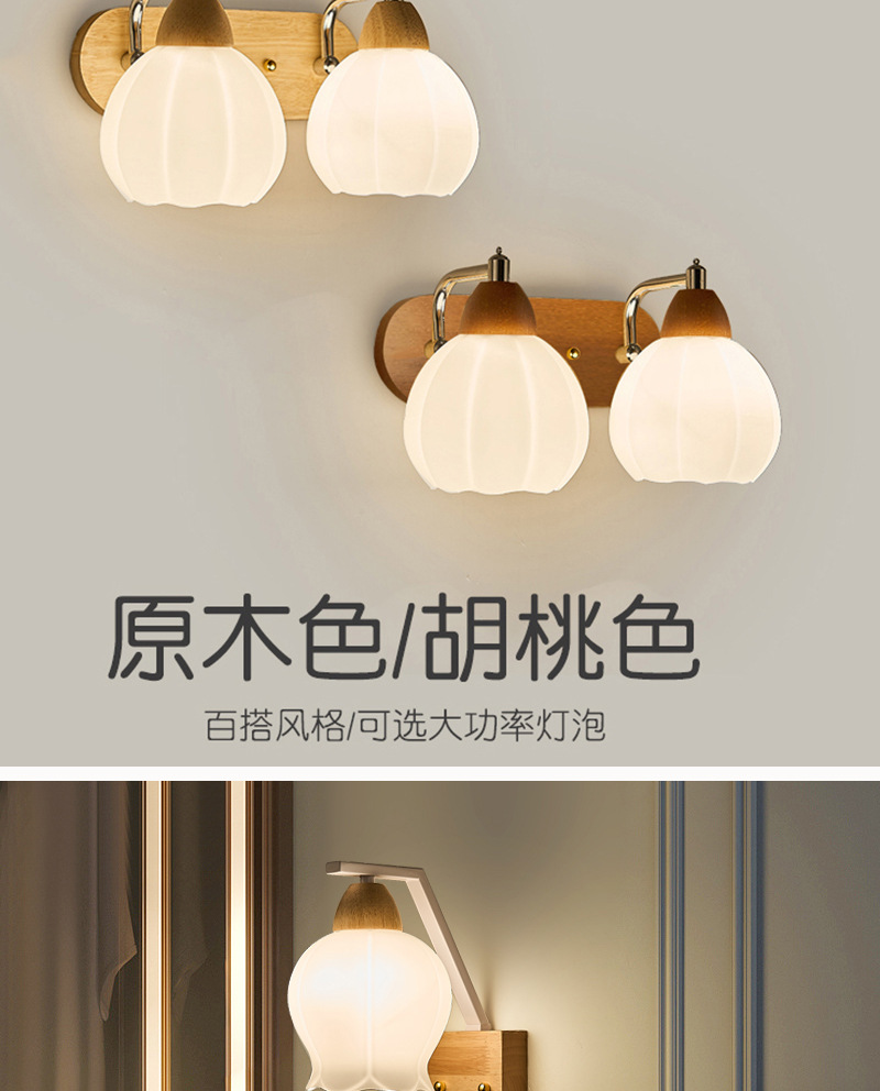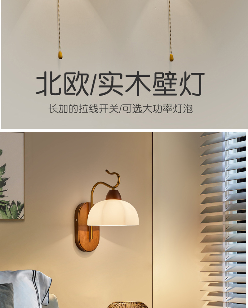 북유럽 복고풍 호두 색상 단단한 나무 벽 램프 침실 머리맡 램프 목재 예술 현대 간단한 계단 거실 배경 벽 램프스토어 가기