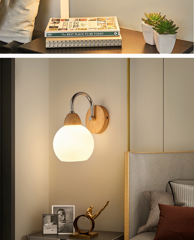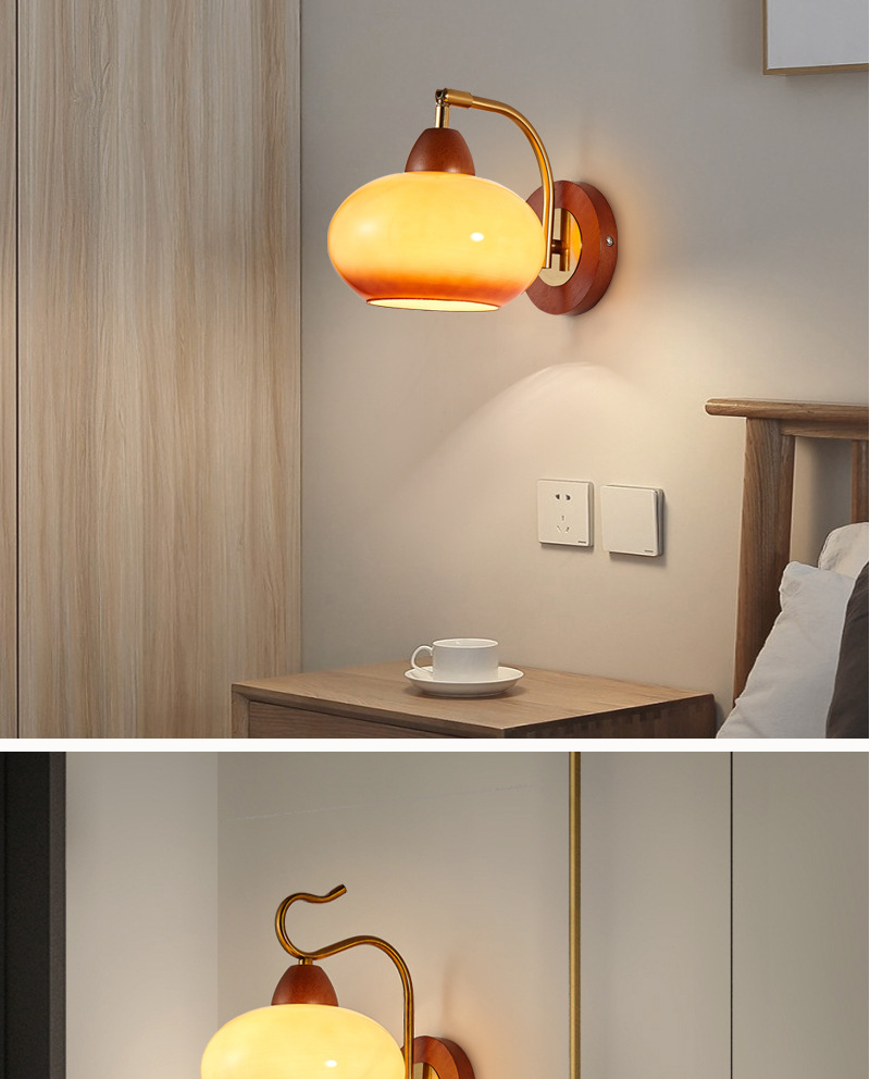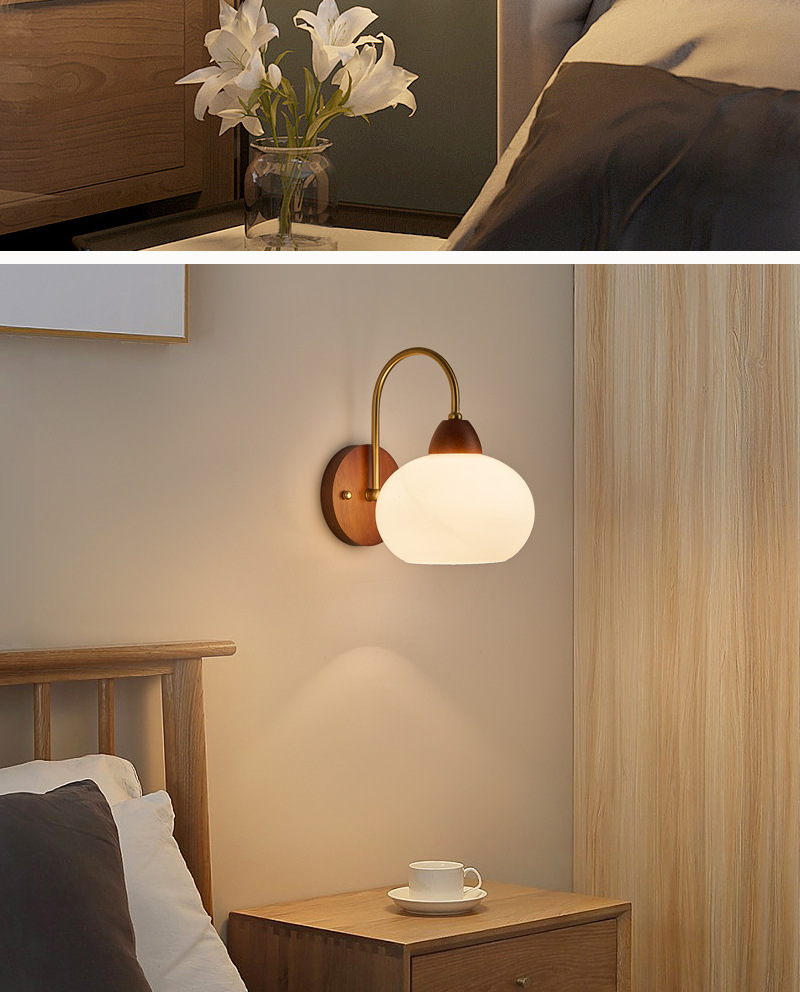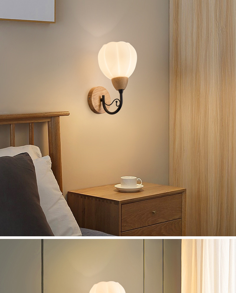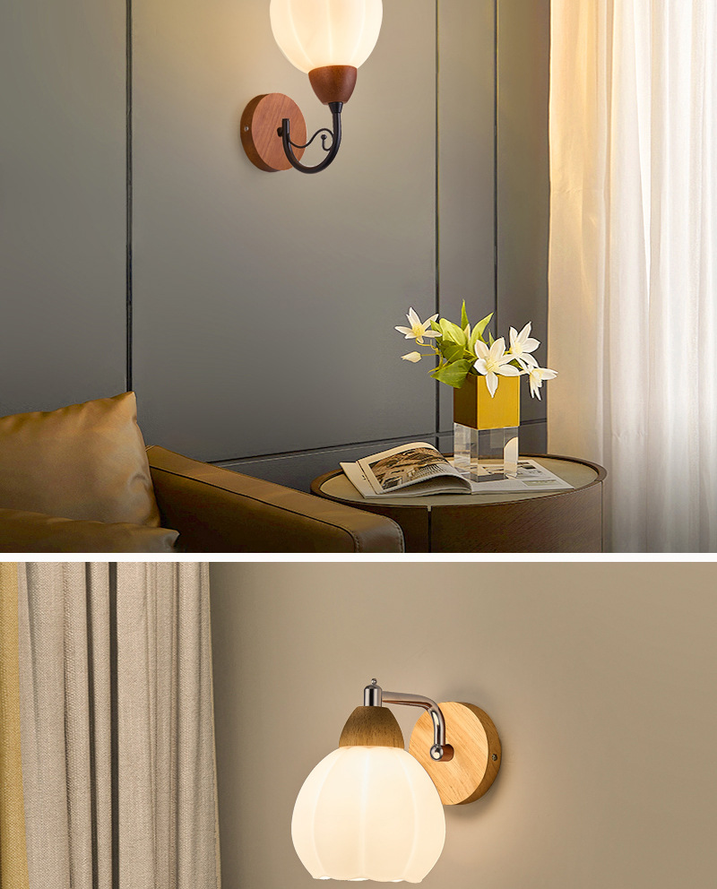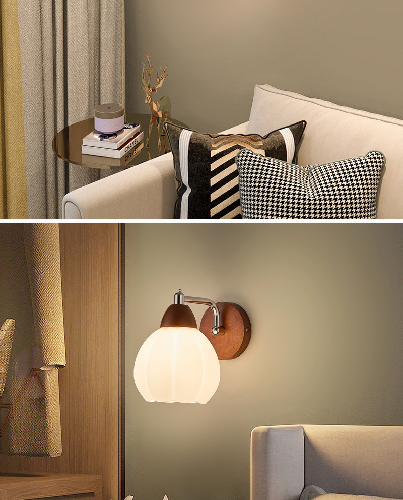 북유럽 복고풍 호두 색상 단단한 나무 벽 램프 침실 머리맡 램프 목재 예술 현대 간단한 계단 거실 배경 벽 램프스토어 가기