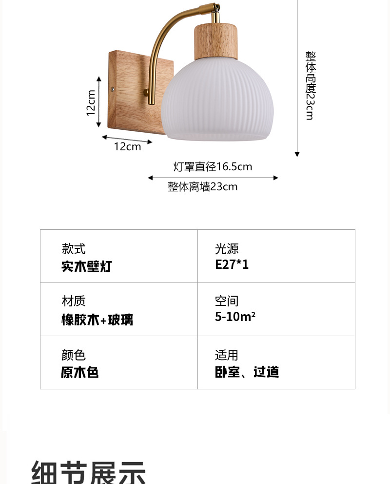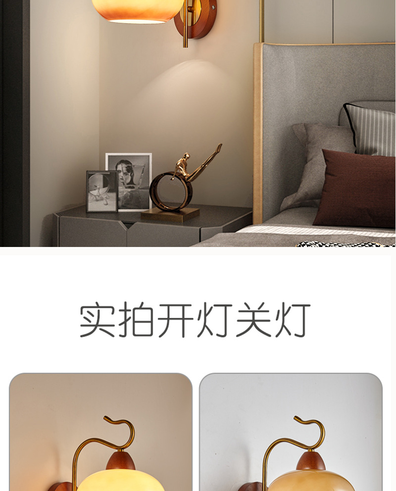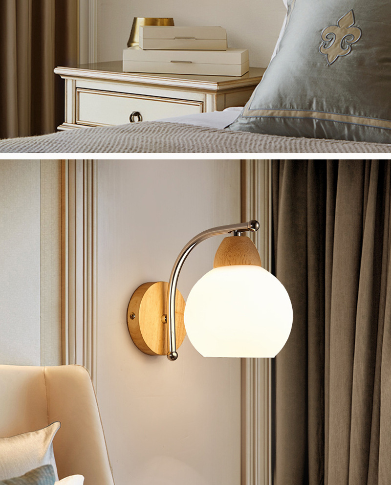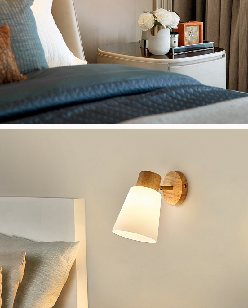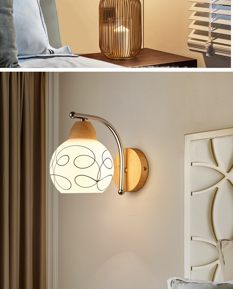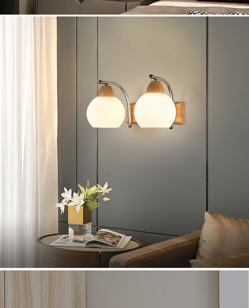 북유럽 복고풍 호두 색상 단단한 나무 벽 램프 침실 머리맡 램프 목재 예술 현대 간단한 계단 거실 배경 벽 램프스토어 가기