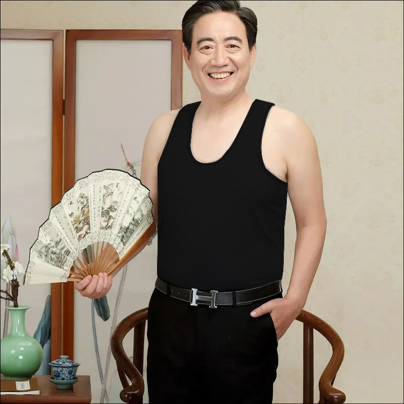 면 100% 중노년용 조끼, 통기성 면 언더셔츠, 여름 남성용 루즈한 노인 셔츠, 땀흡수 허들조끼