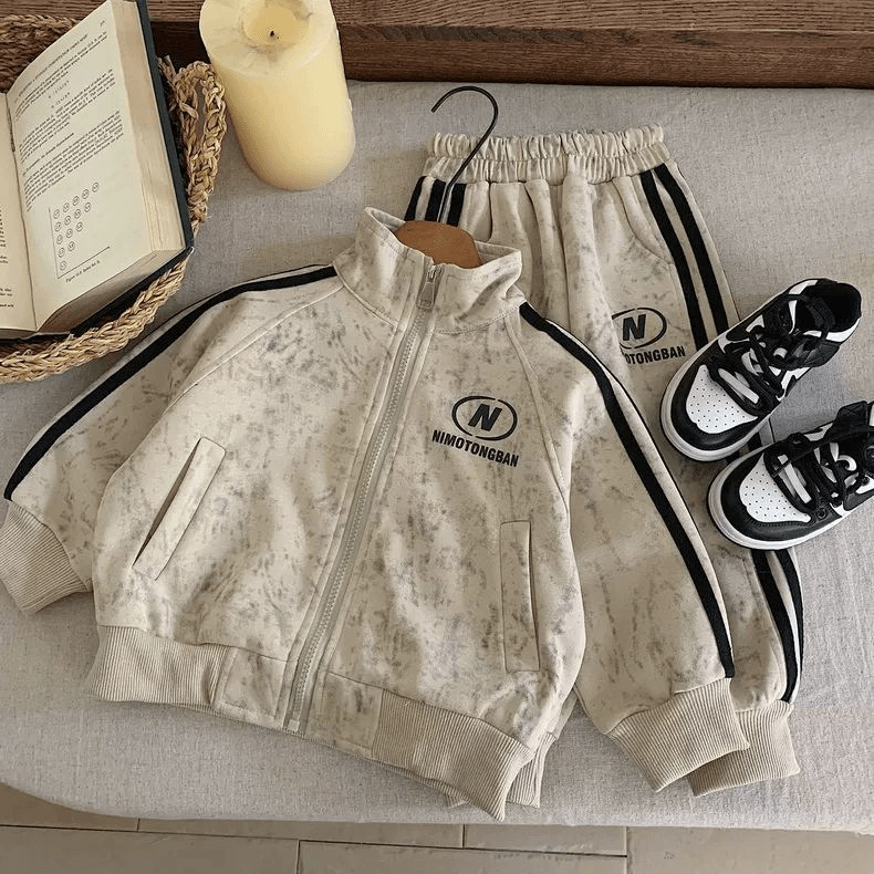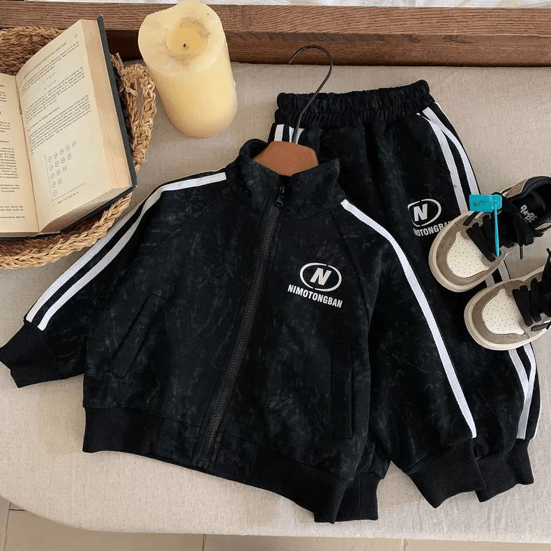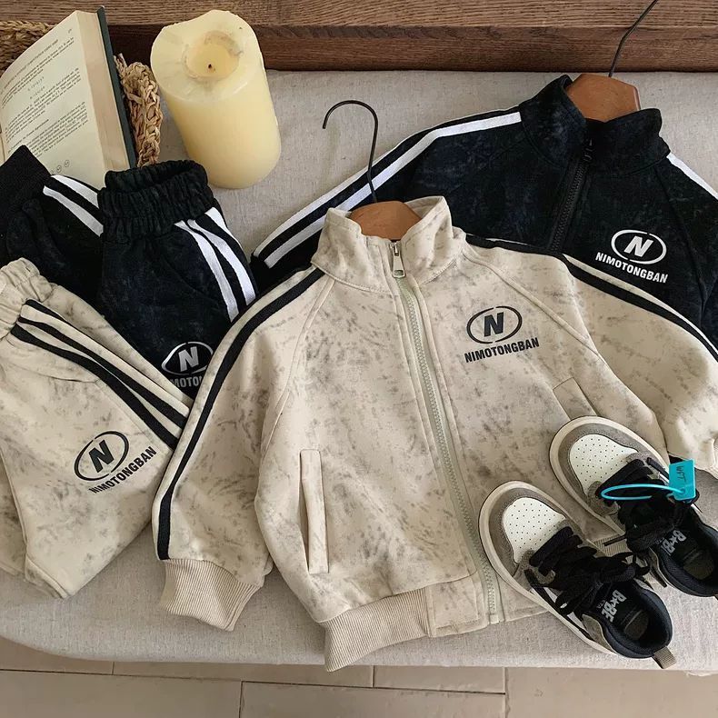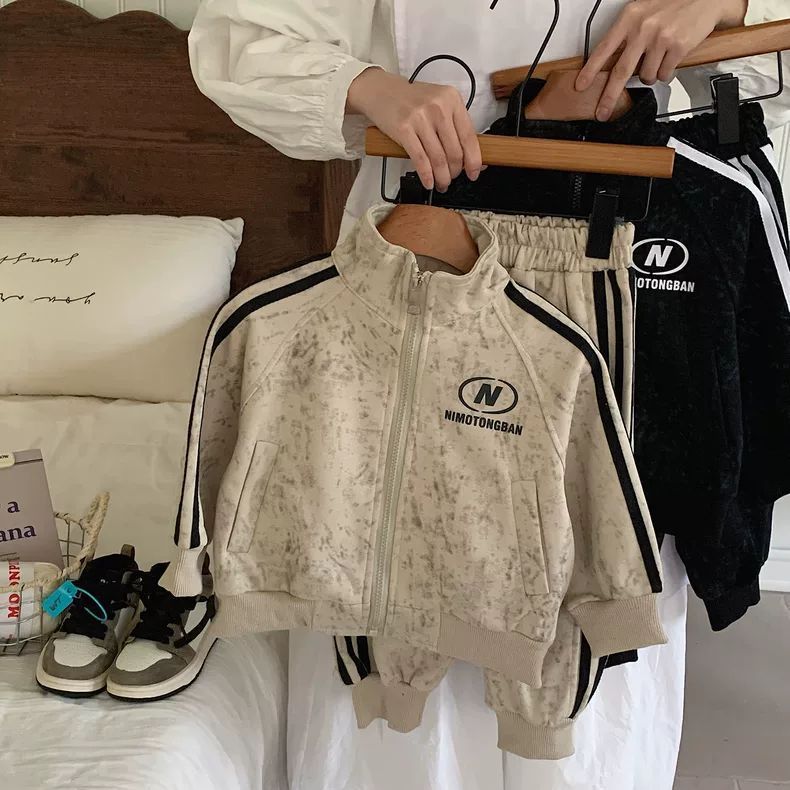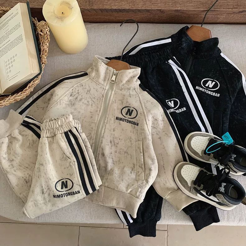 소년 봄, 가을 정장 2025 새로운 스타일 아동 운동복 아동 봄 운동복 스웨트 셔츠와 스웨트 팬츠 투피스 세트 잘 생기고 트렌디합니다.스토어 가기