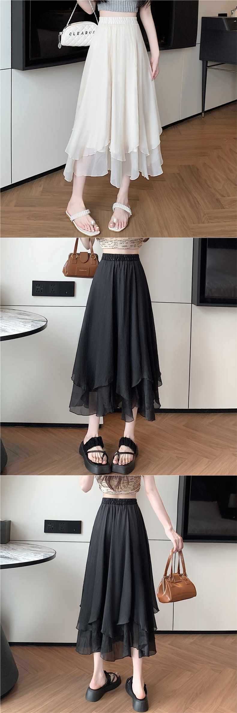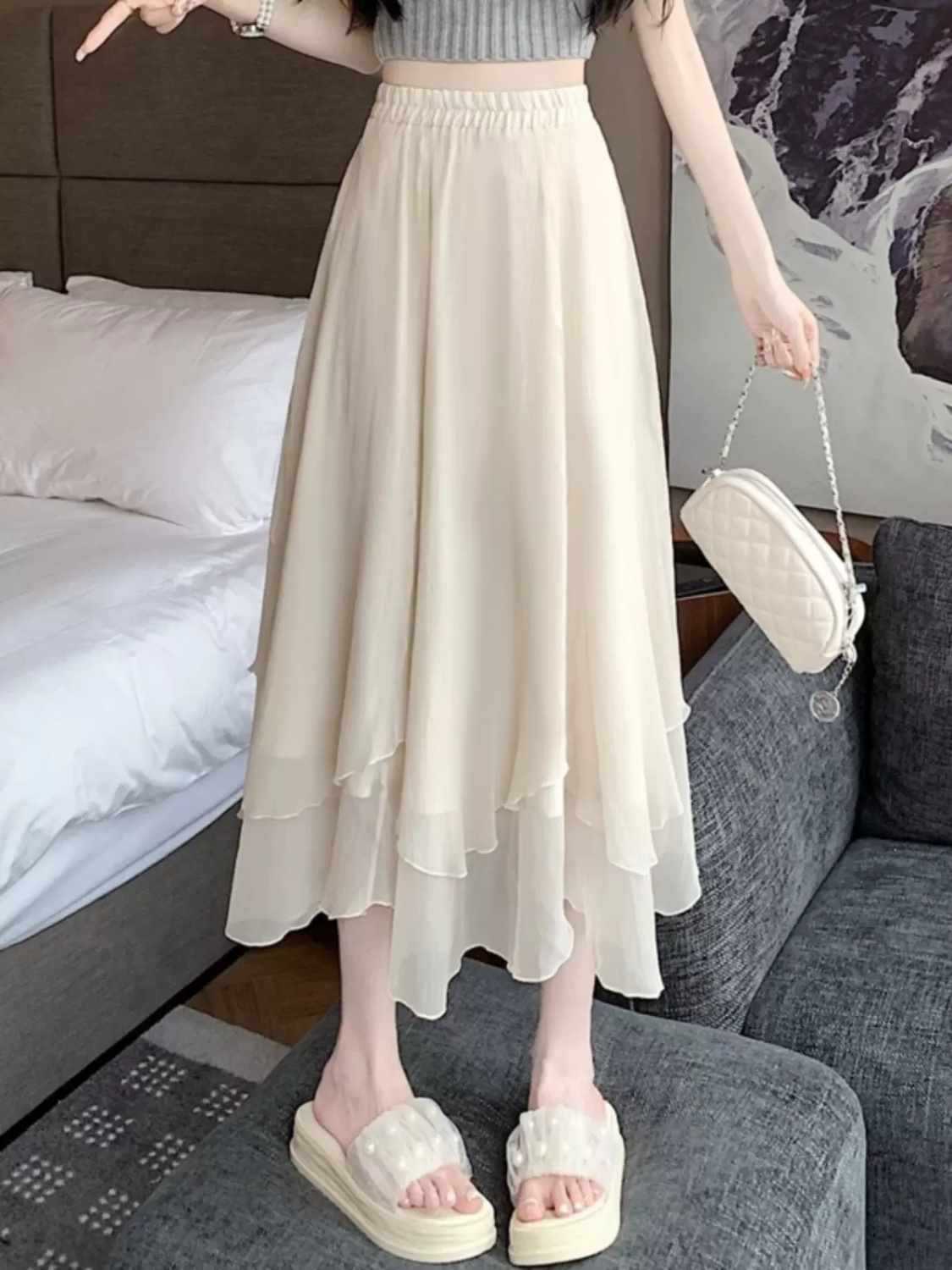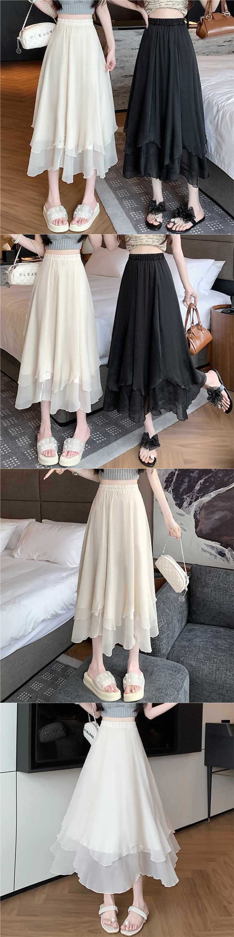 여성용 스커트 여름 롱 스커트 얇은 2025 새로운 하이 웨이스트 디자인 a 라인 롱 불규칙 메쉬 스커트