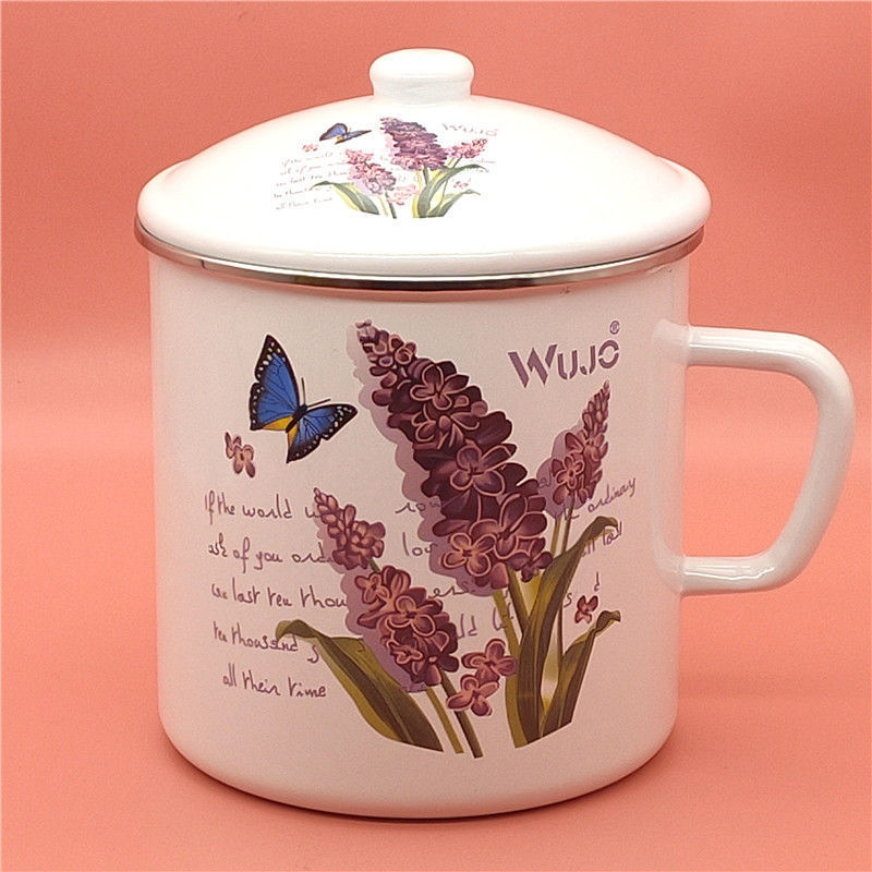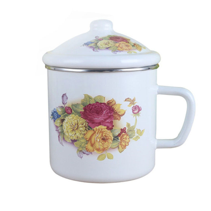 대용량 빈티지 에나멜 워터 컵 클래식 두꺼운 에나멜 실린더 뚜껑 구식 아이언 티 컵 대형 머그컵 공장스토어 가기