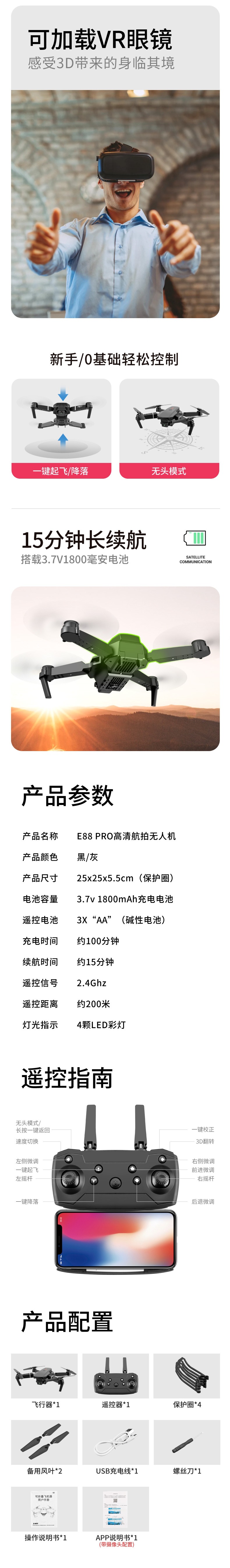 • 블랙 [8K 전자 제어 듀얼 카메라] 지능형 장애물 회피, 원클릭 복귀 및 무료 보관 가방