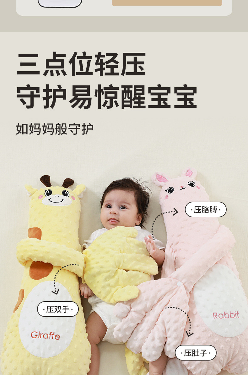 아기 진정 인형은 2 월에 아기와 토끼가 엉덩이를 때리기 위해 때릴 수 있습니다. 잠자는 아기 진정 손바닥스토어 가기