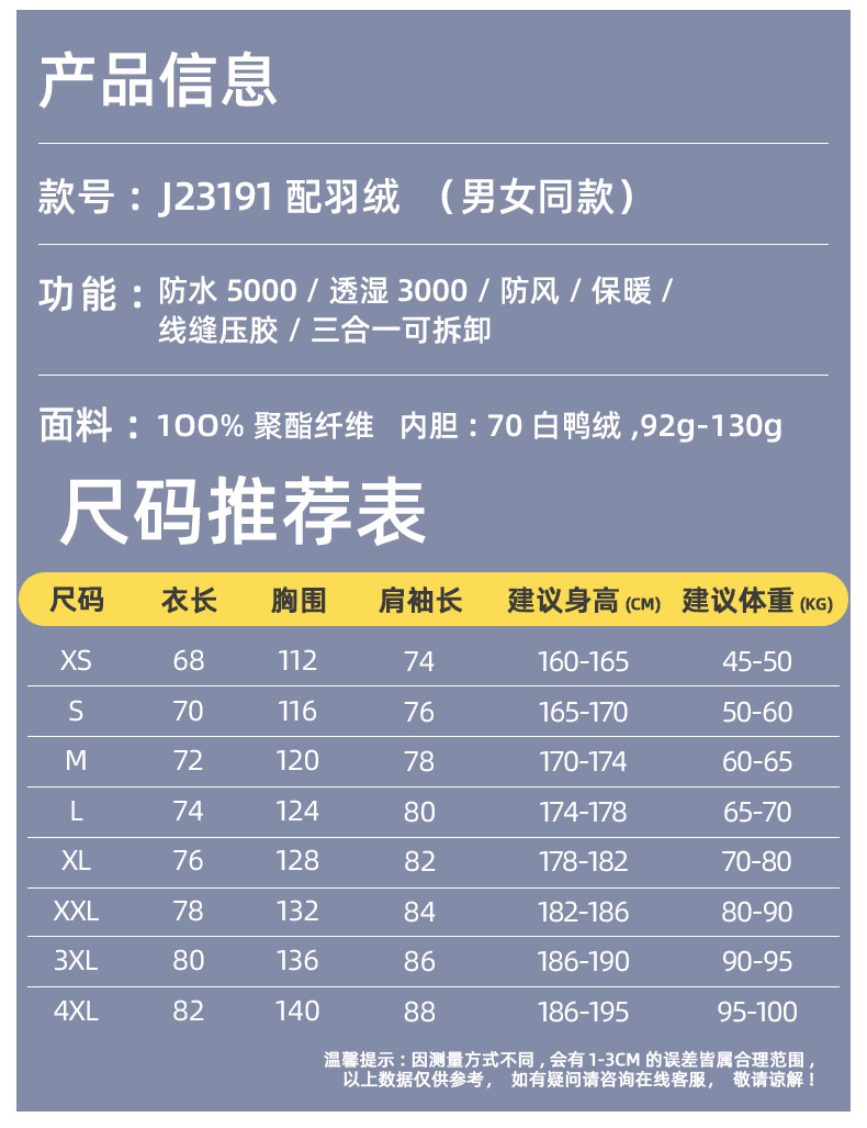 새로운 야외 재킷 다운 라이너 3-in-one 따뜻한 화이트 오리 다운 남성 및 여성 등산 작업복 재킷