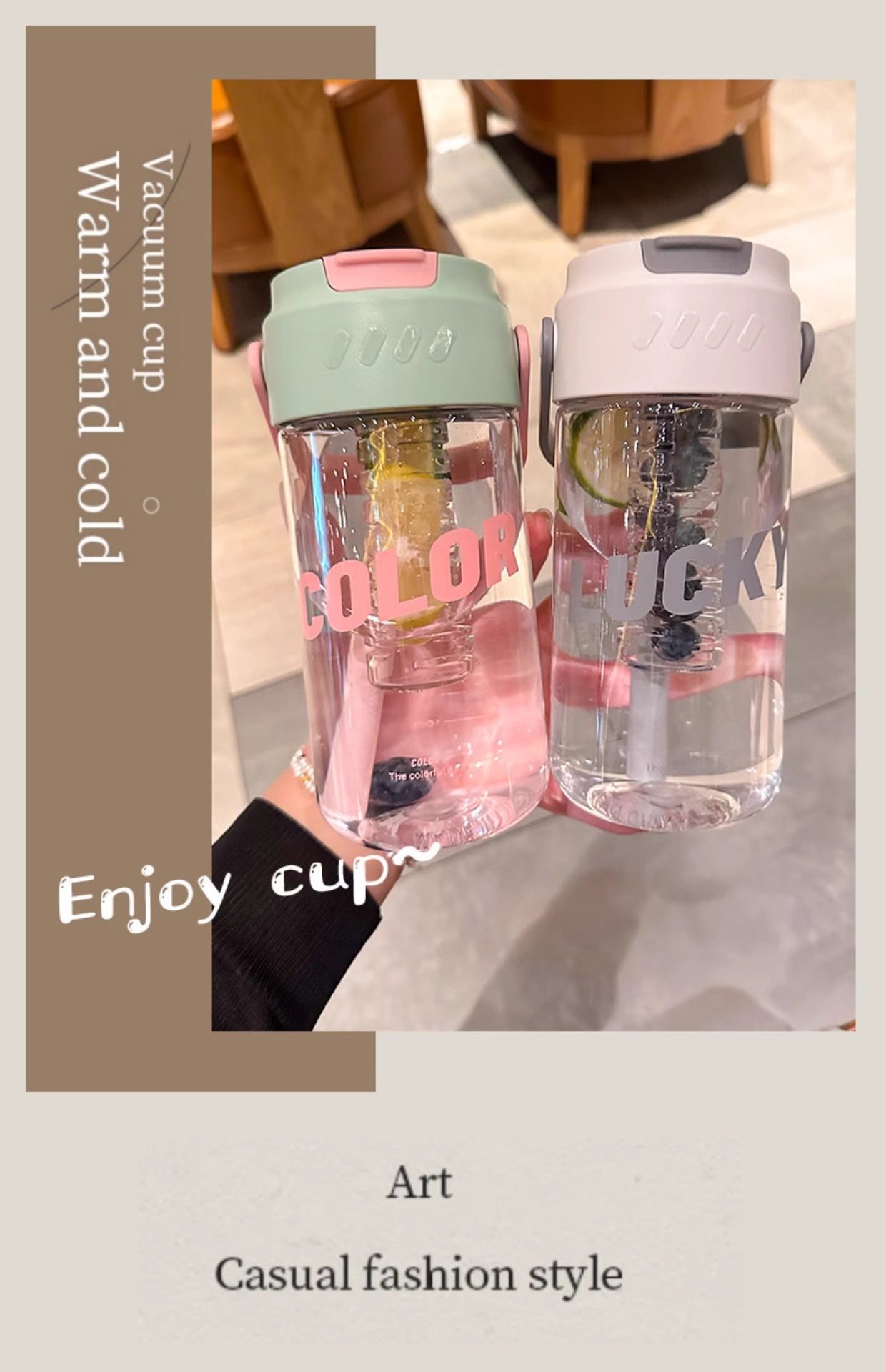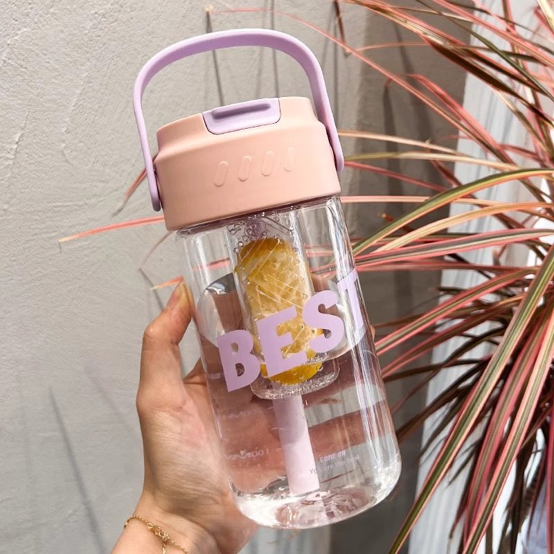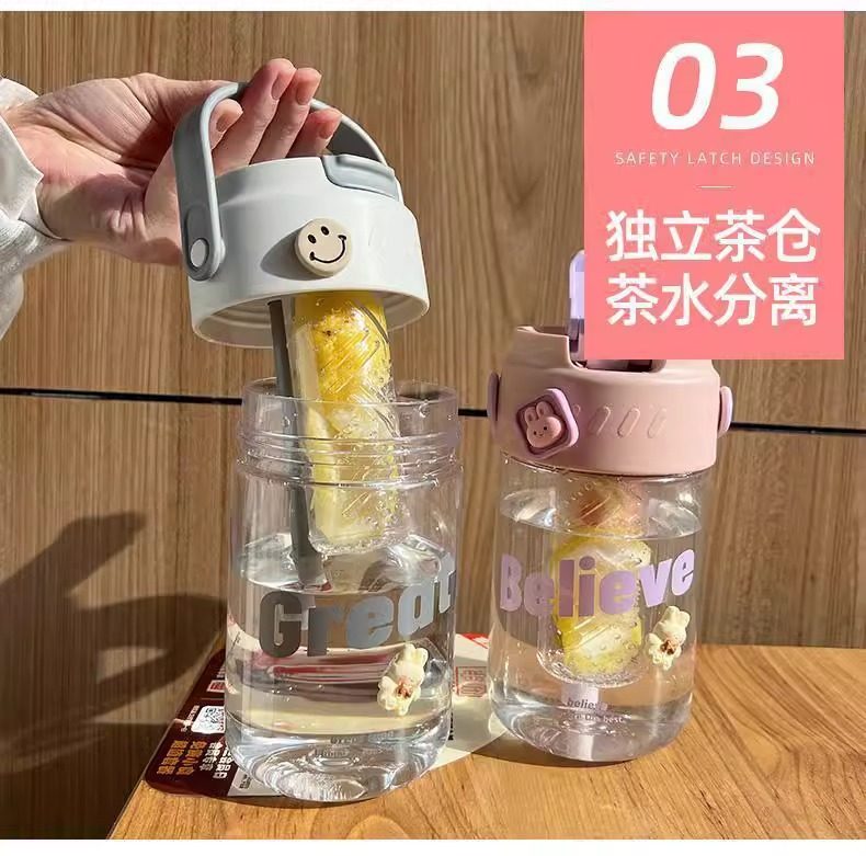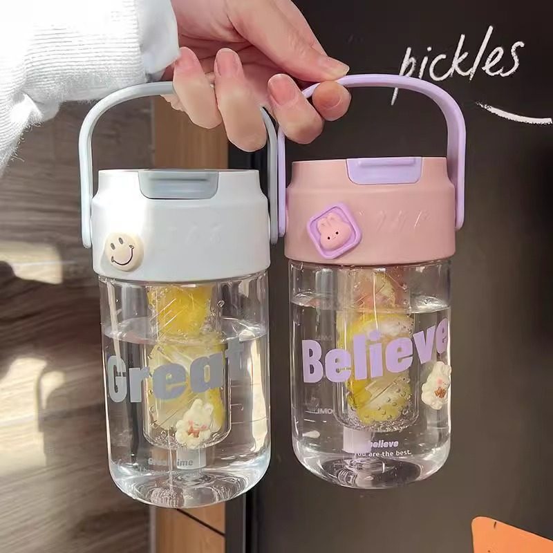 여름 새로운 대용량 휴대용 차 분리 컵 소녀 높은 가치 캐주얼 컵 배꼽 피펫 컵 고온 저항 컵