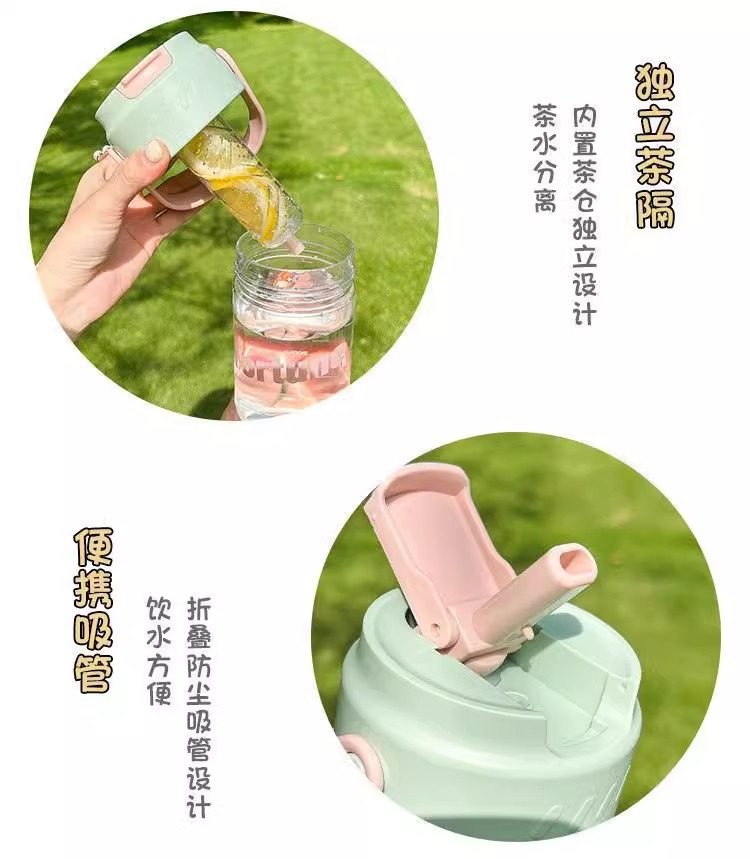 여름 새로운 대용량 휴대용 차 분리 컵 소녀 높은 가치 캐주얼 컵 배꼽 피펫 컵 고온 저항 컵스토어 가기