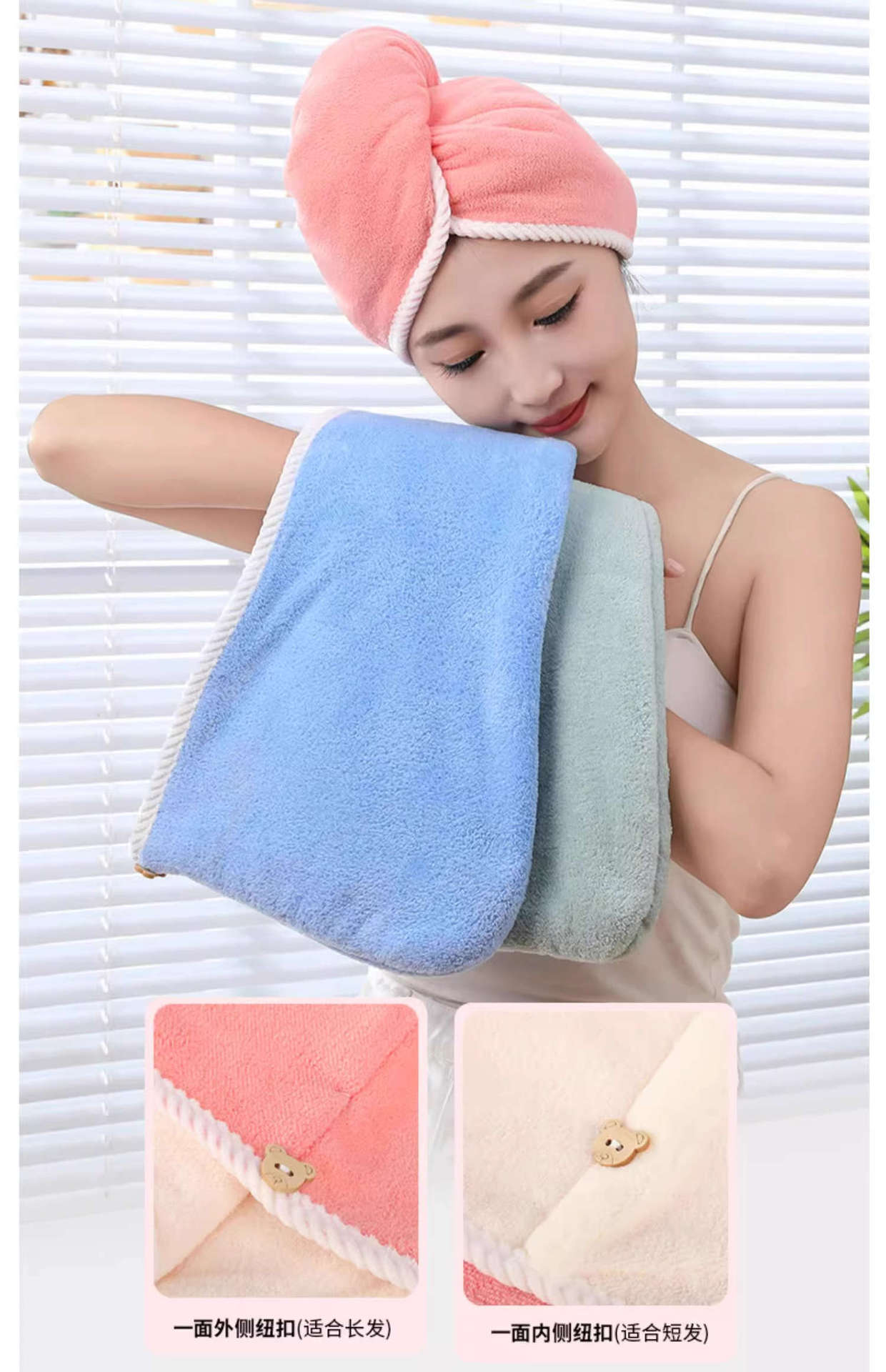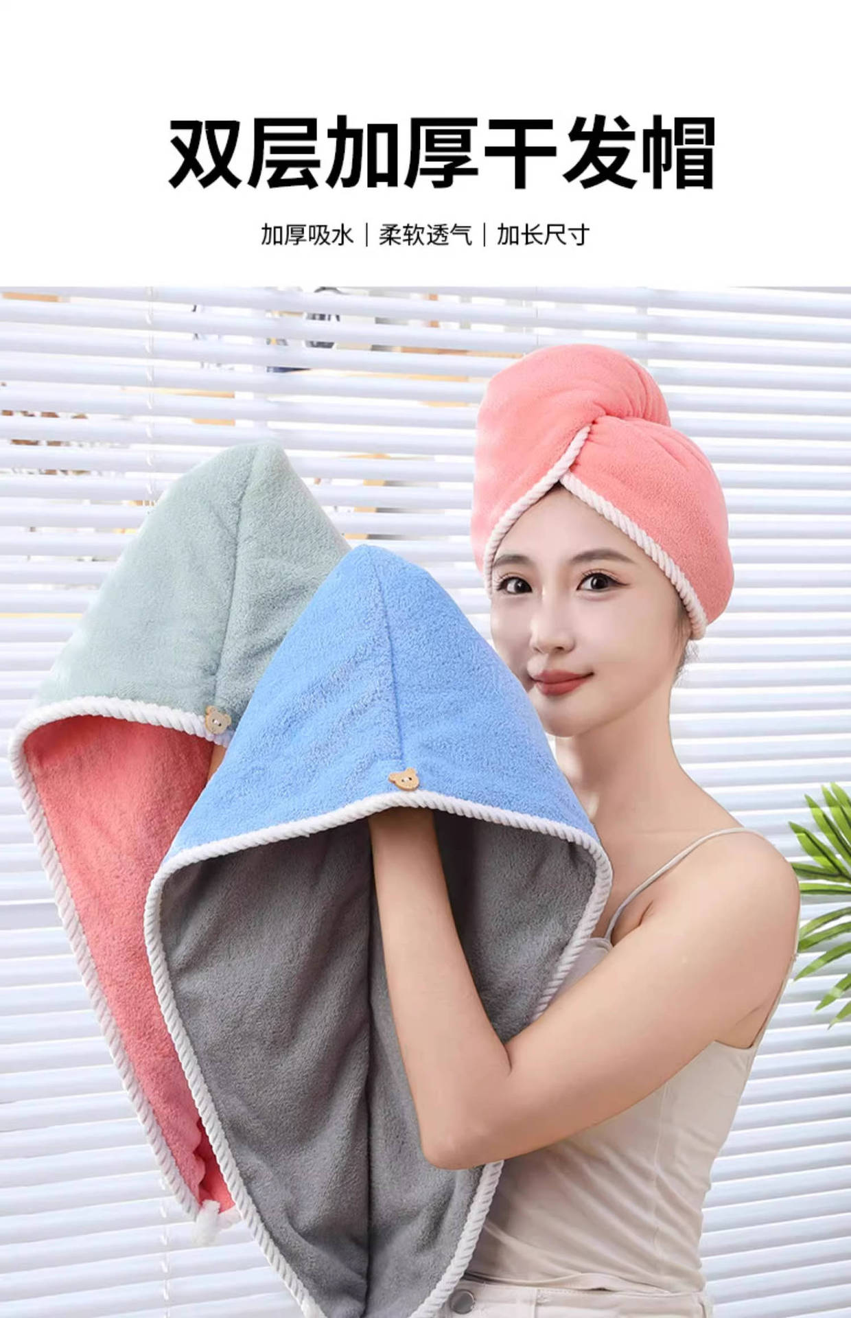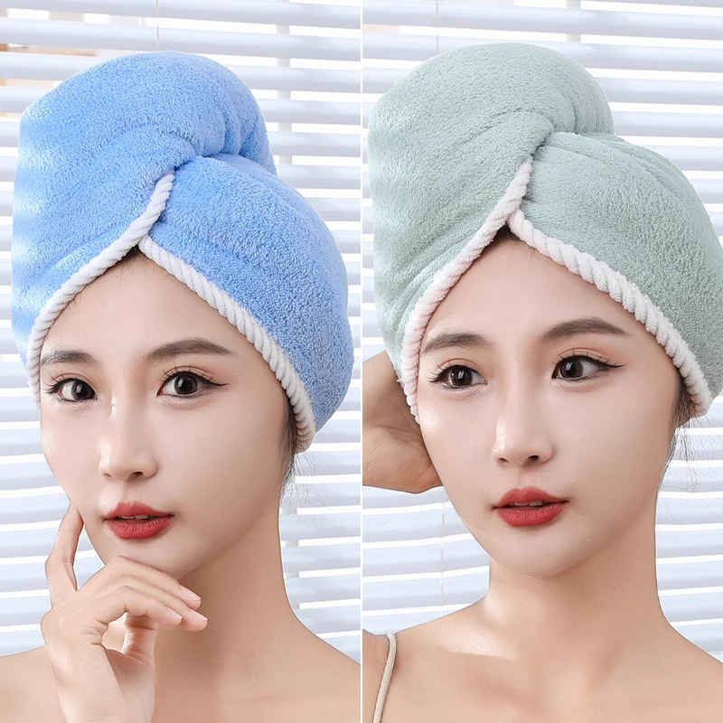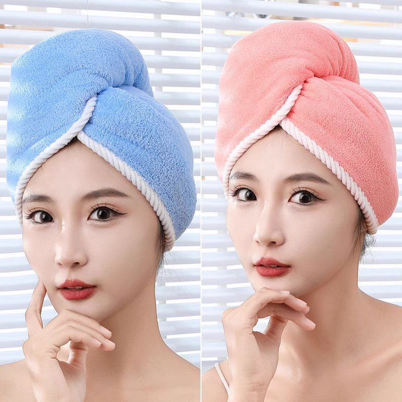여성용 이중층 두꺼운 헤어 드라이어 캡, 흡수성 및 속건성 헤어 타월, 머리 감기용 새 스타일 터번 샤워 캡
