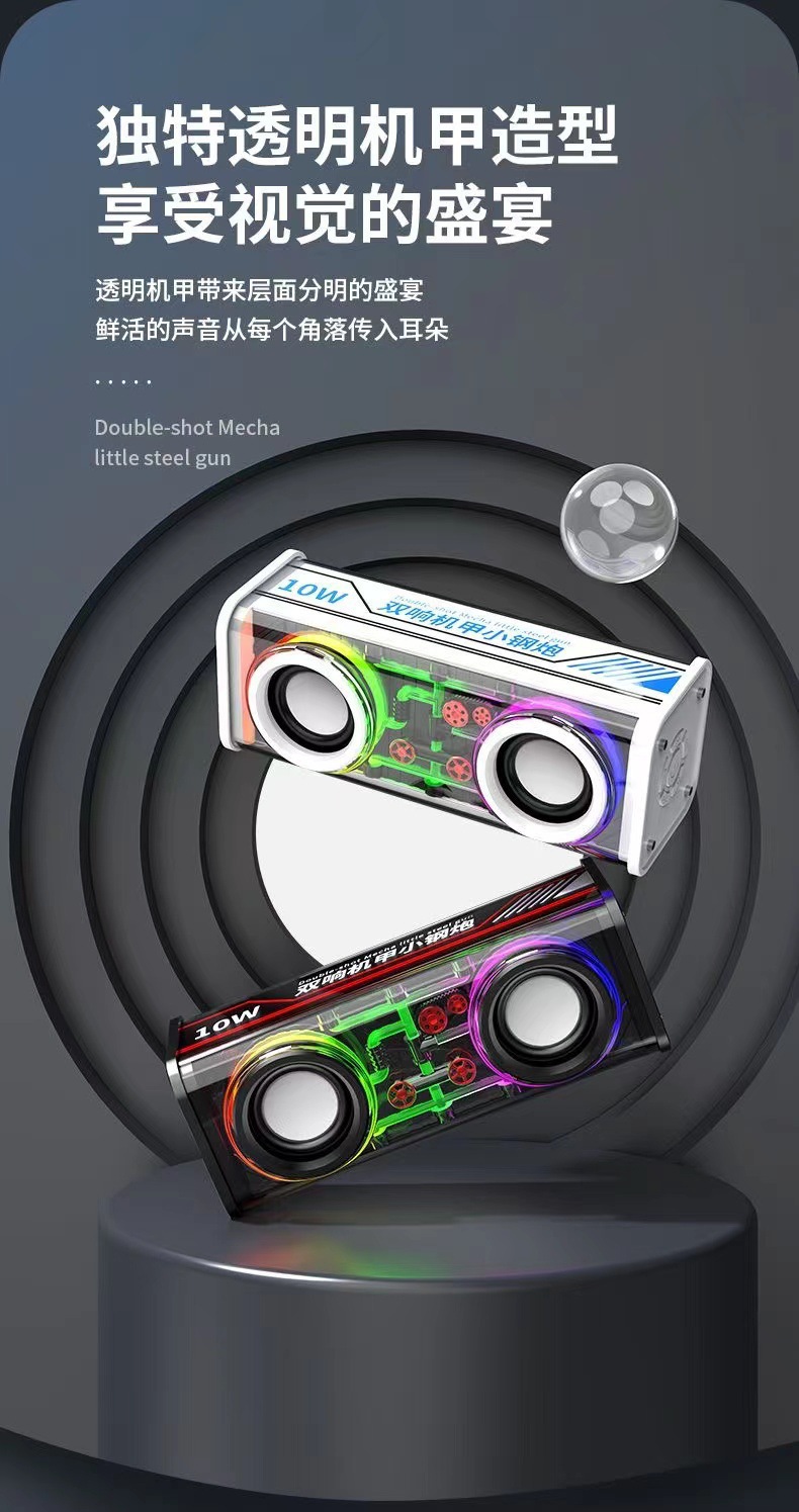 인터넷 연예인 블루투스 스피커 투명 메카 더블 리액션 소형 강철 총 무선 미니 스피커 대용량 다채로운 조명 서브우퍼스토어 가기
