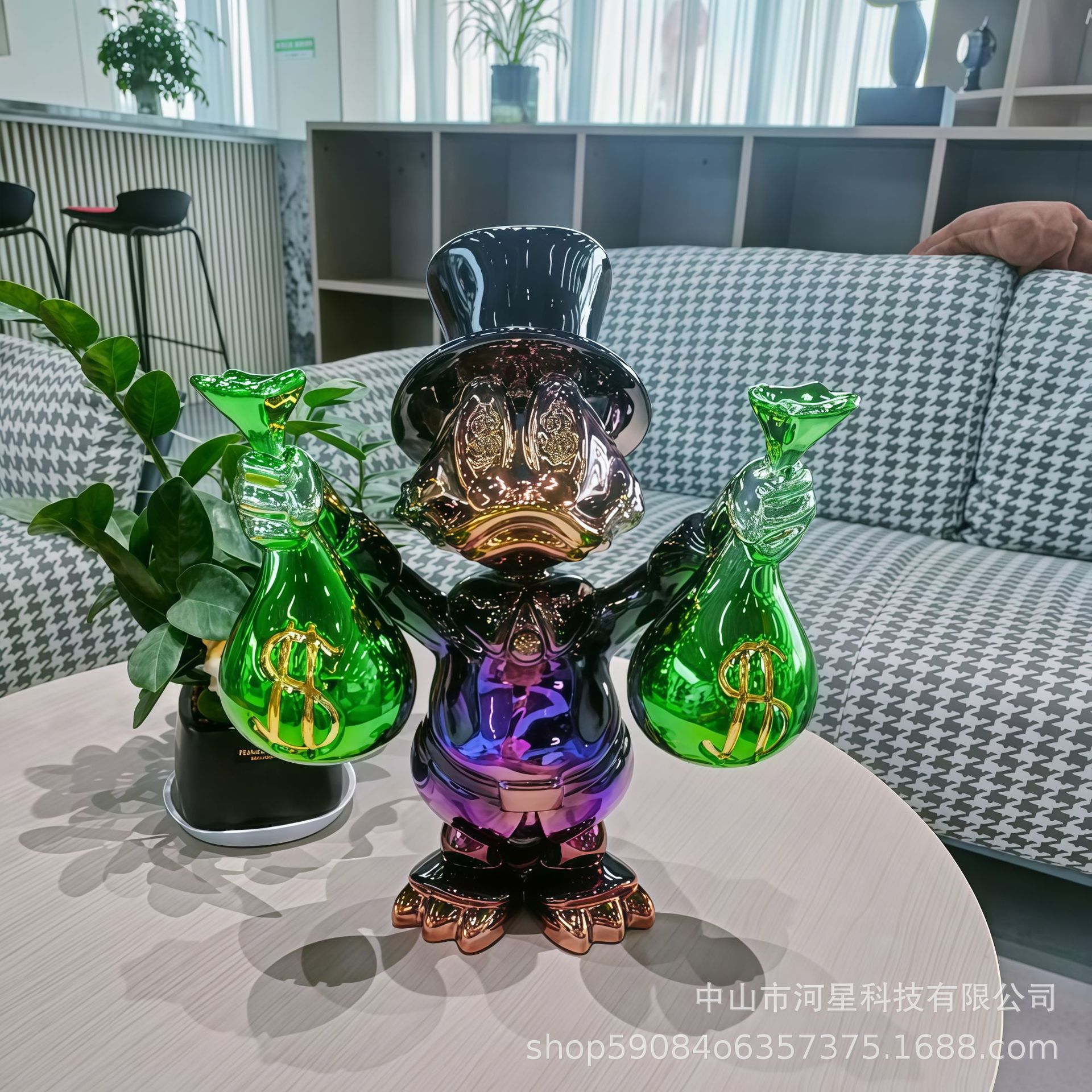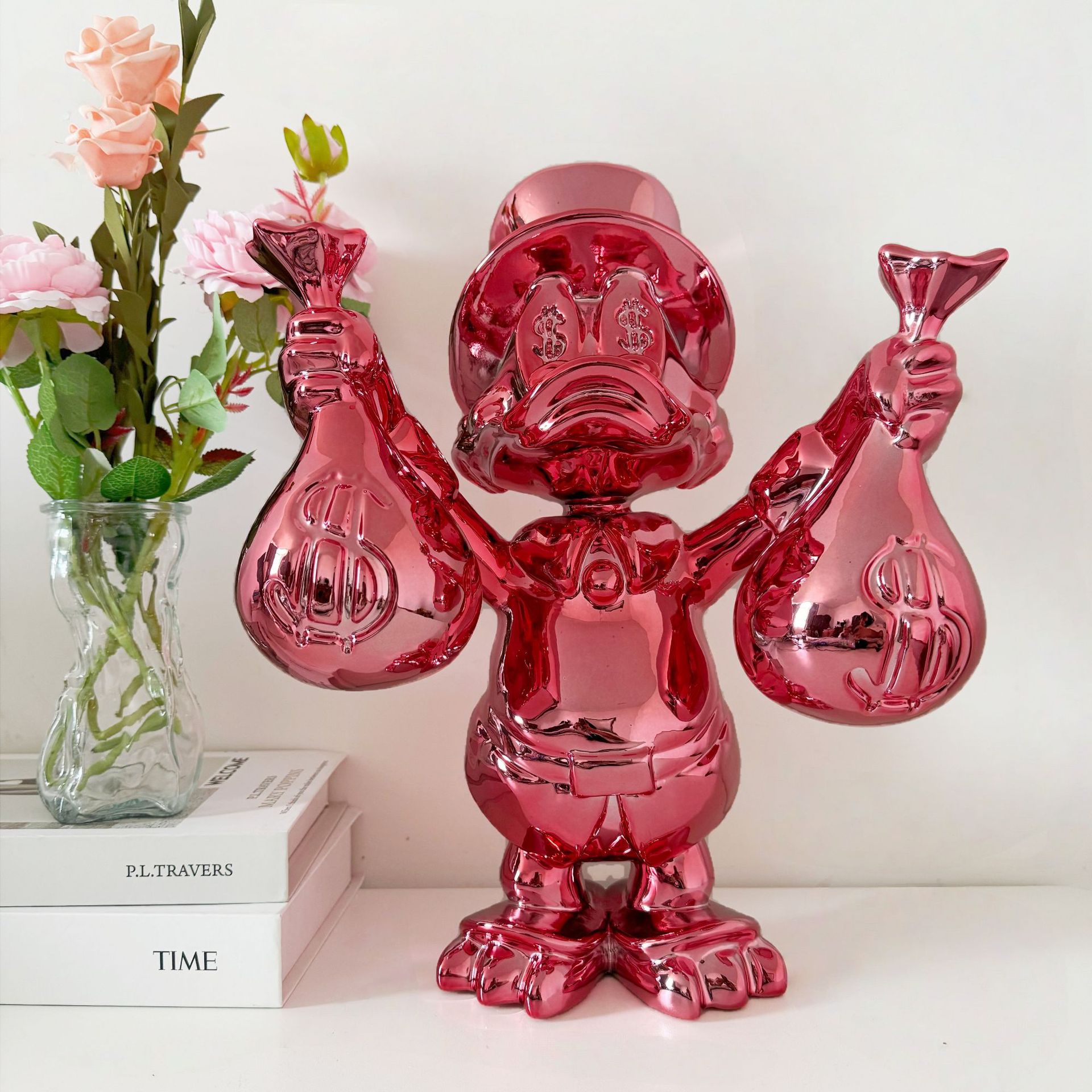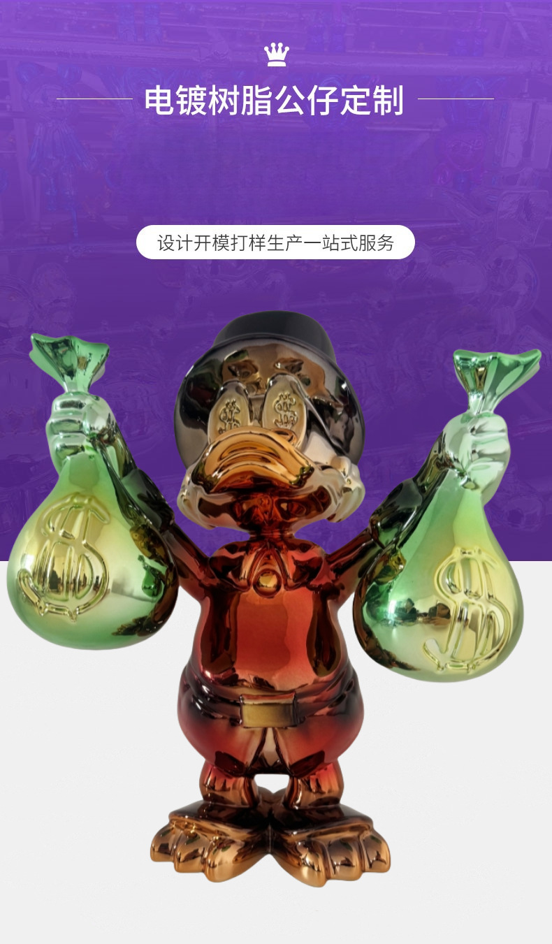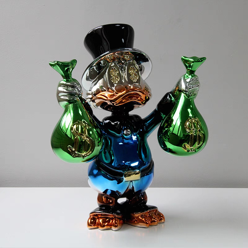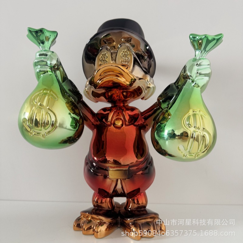 맞춤형 도매 도널드 덕 전기 도금 장식품 상업 디스플레이 모델 룸 홈 장식 고급 수공예품 조각