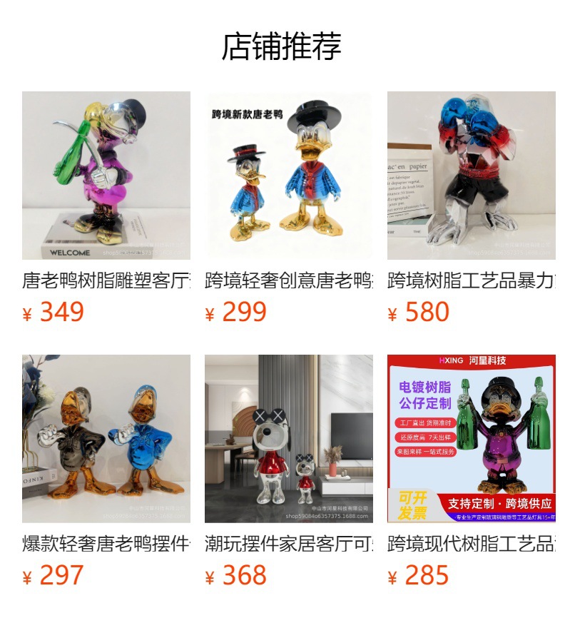 맞춤형 도매 도널드 덕 전기 도금 장식품 상업 디스플레이 모델 룸 홈 장식 고급 수공예품 조각스토어 가기