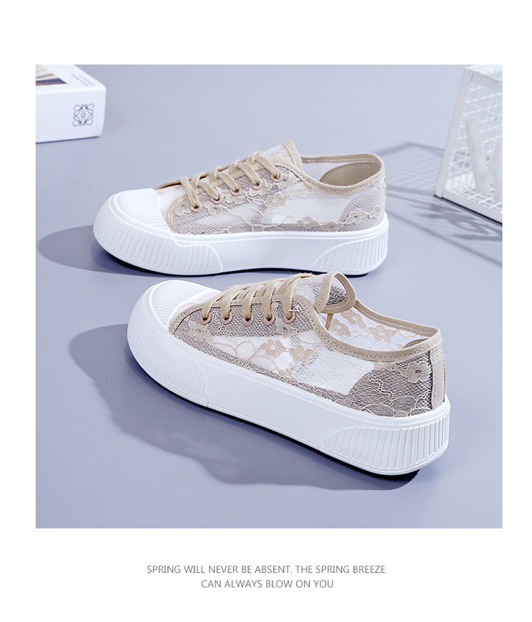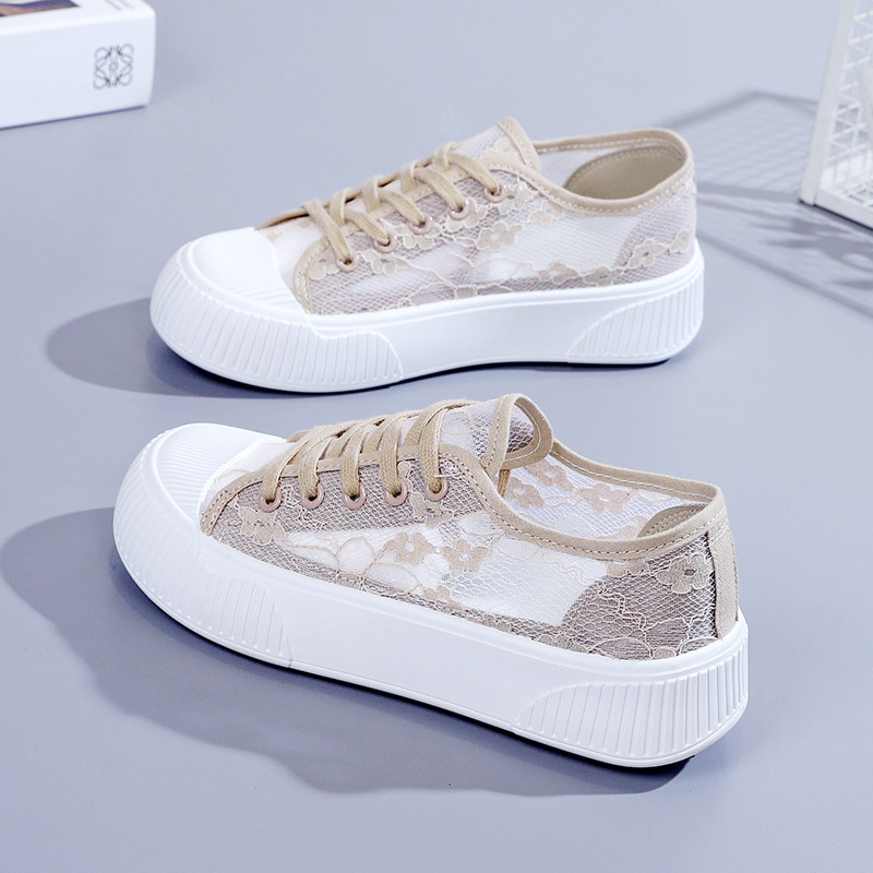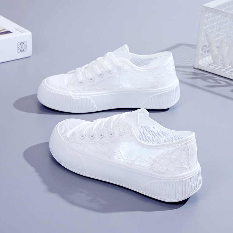 2025 여름 새로운 한국어 스타일 ins 레이스 통기성 흰색 신발 여학생 메쉬 여성 신발 플랫 신발 9918