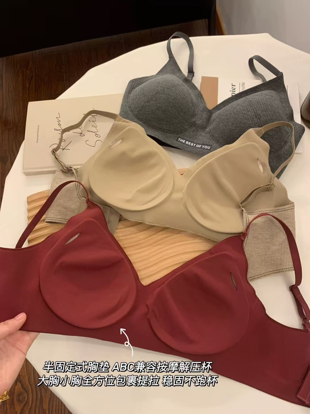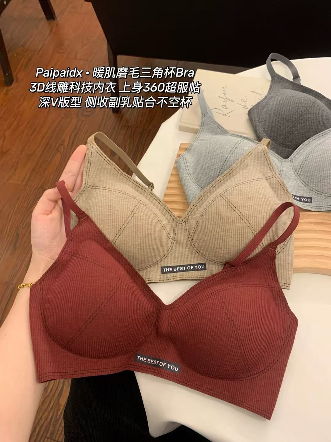 작은 가슴을 가진 여성을 위한 크로스보더 마이크로 기모 소프트 서포트 리프팅 슬링 심리스 속옷, 푸쉬업, 와이어 프리 처짐 방지 브라스토어 가기
