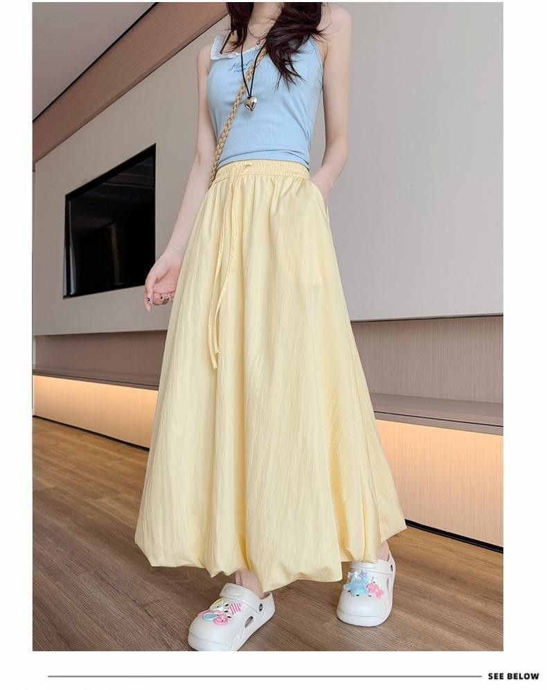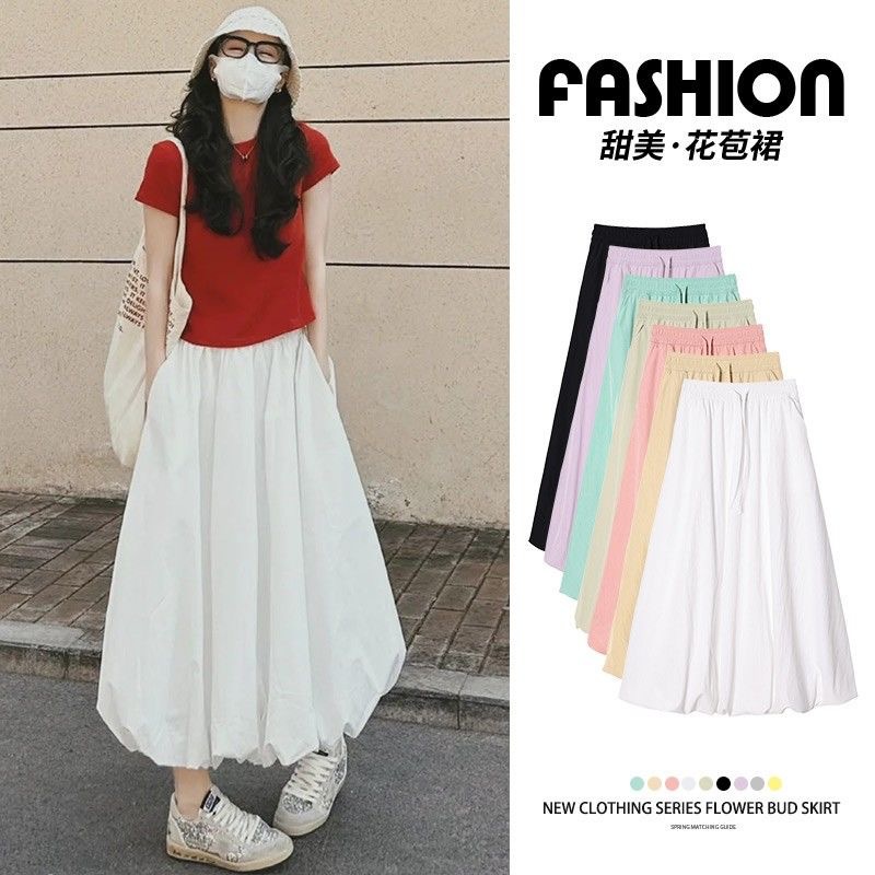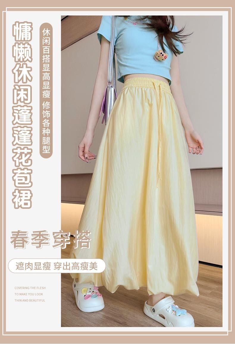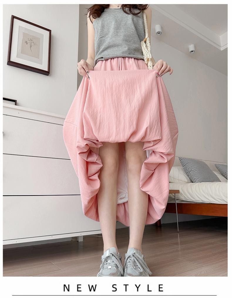 [좋은 드레이프] 2025 새로운 산 스타일 푹신한 꽃 봉오리 스커트 여름 가랑이 높은 허리 슬림 게으른 스타일 스커트를 덮음스토어 가기