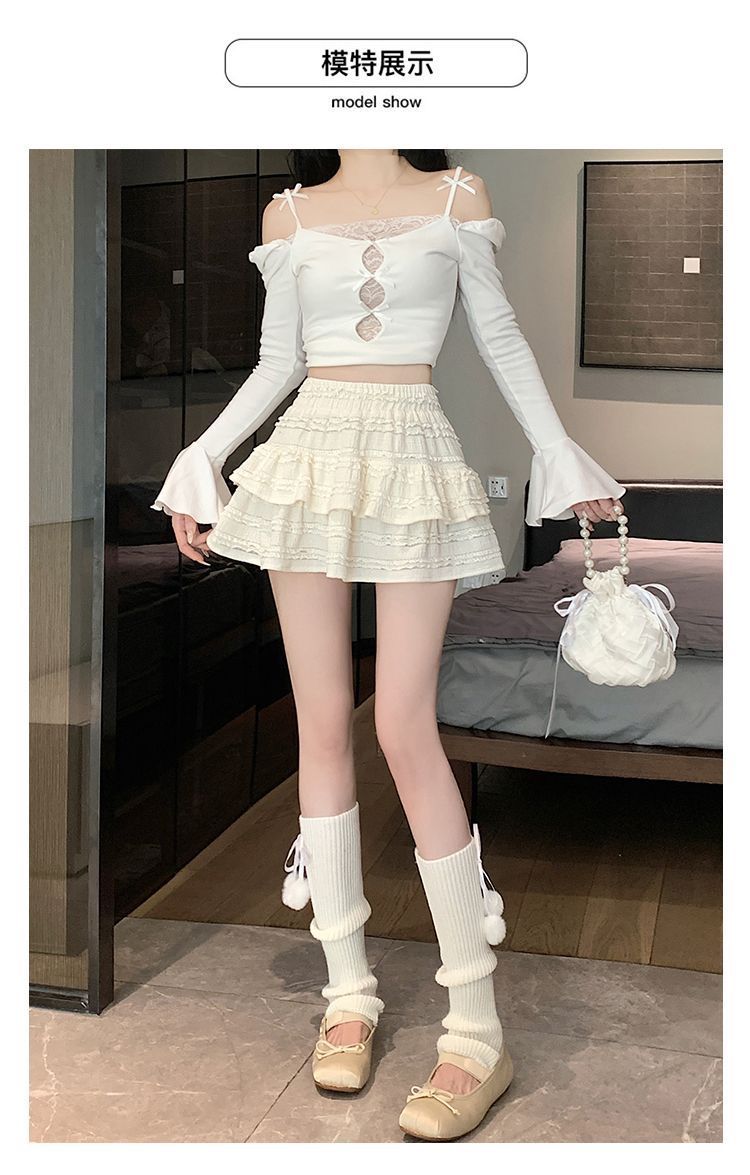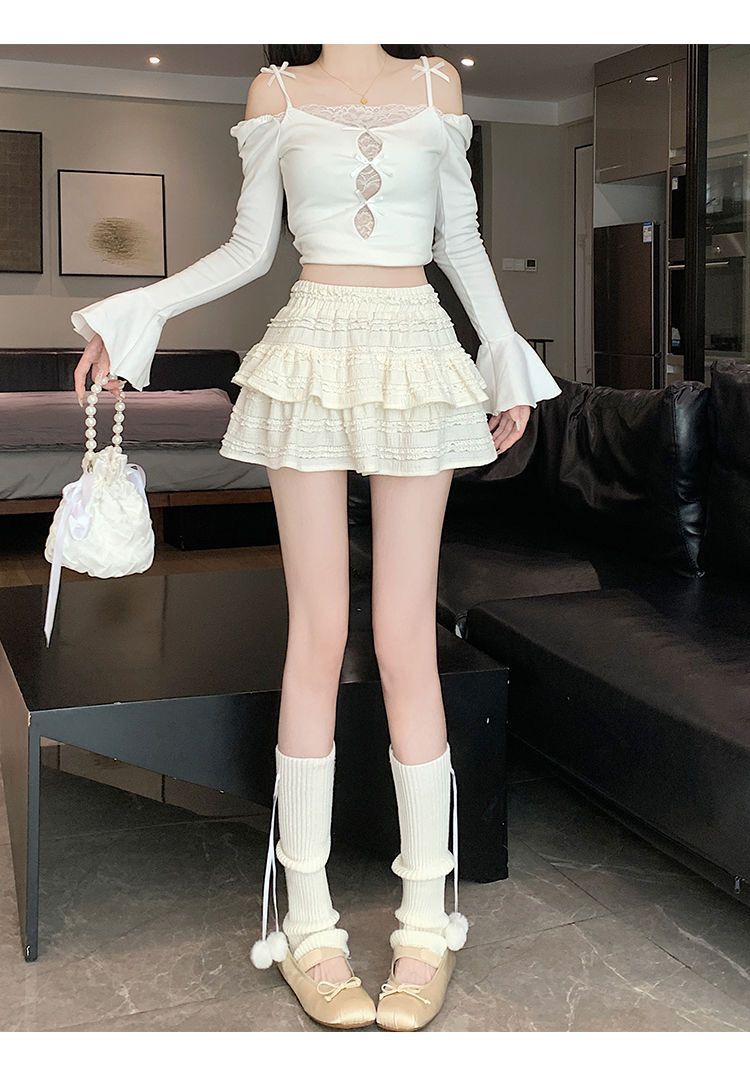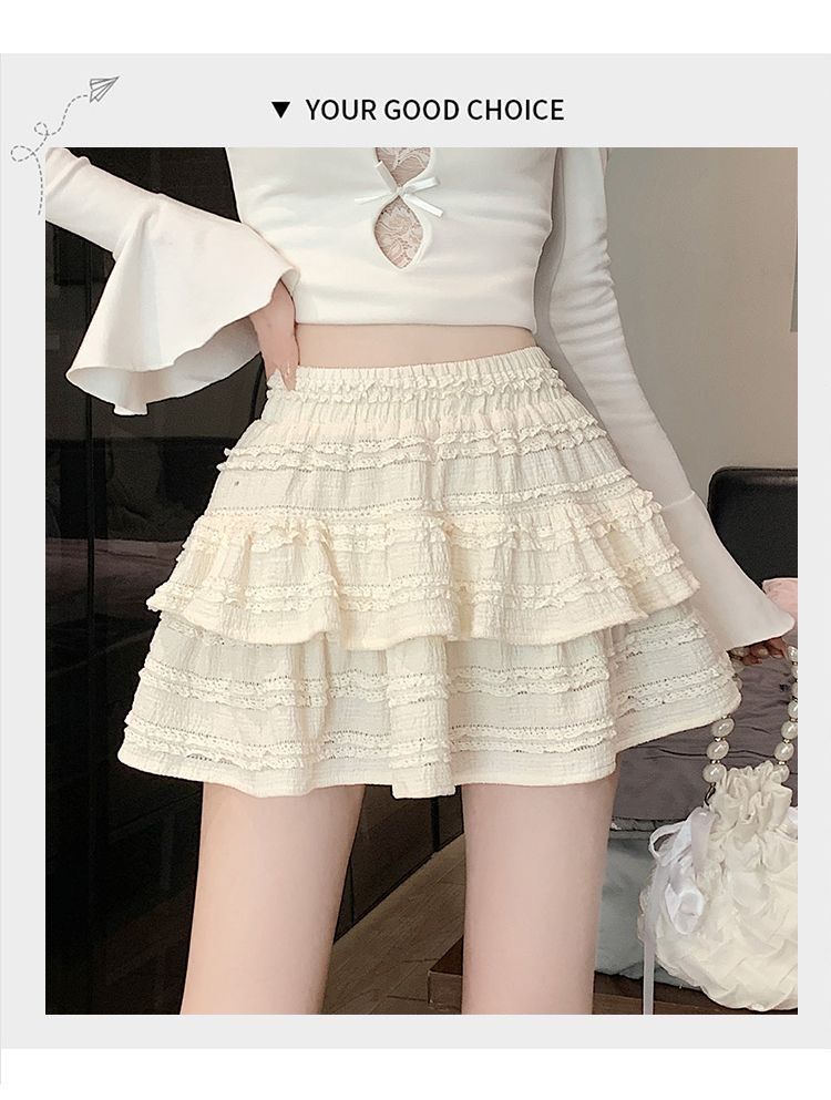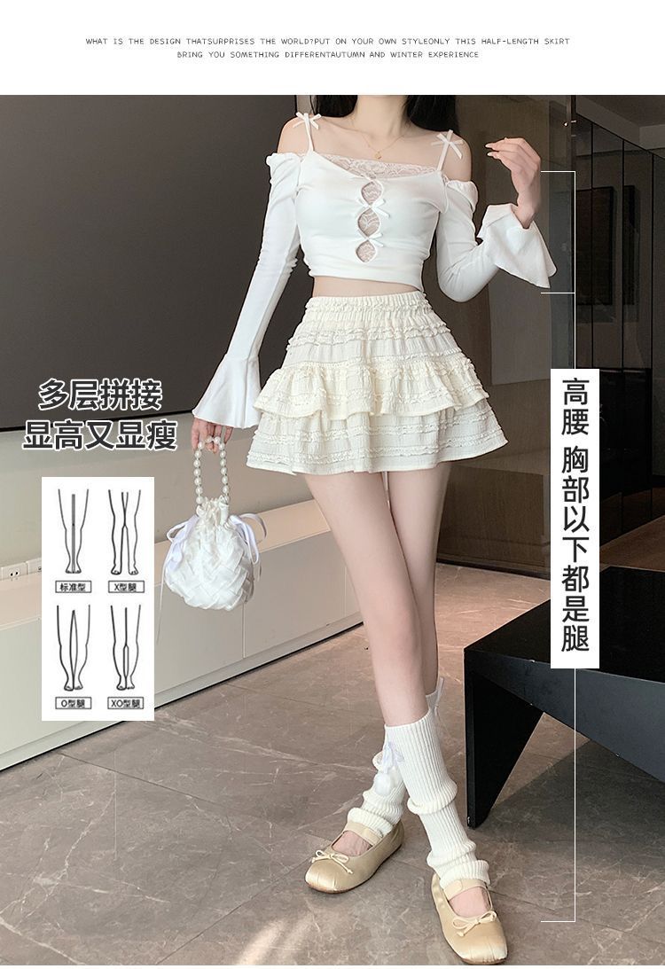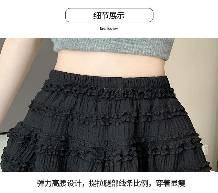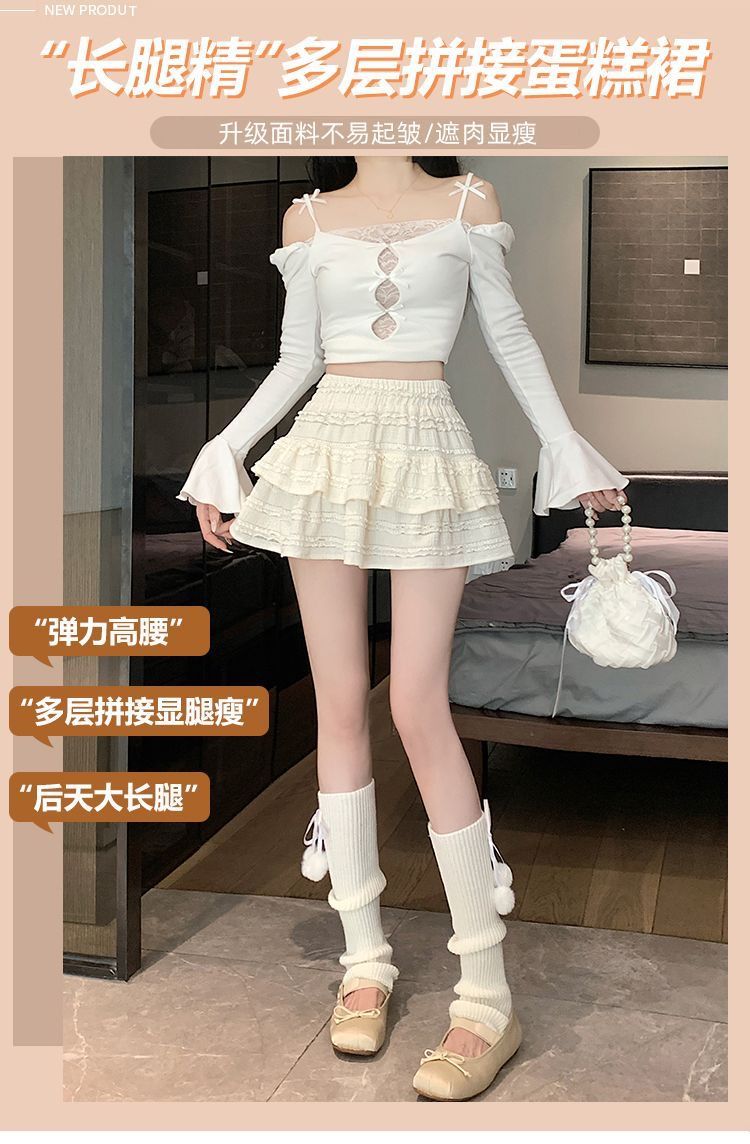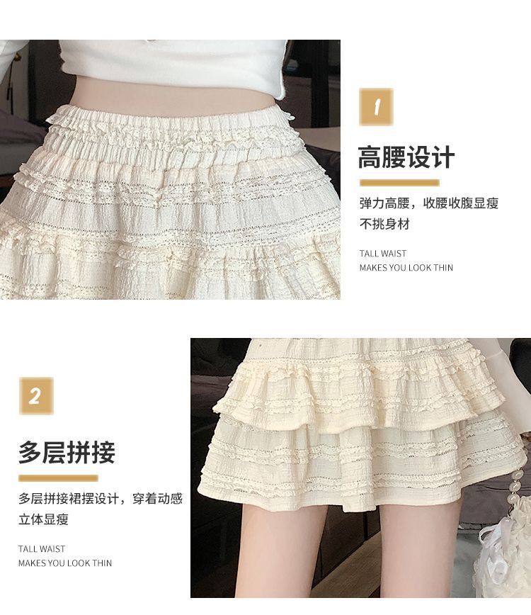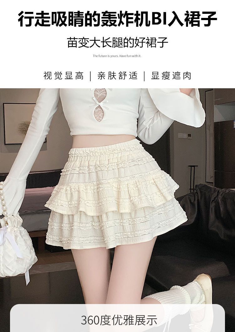 화이트 발레 스타일 퍼프 스커트 여성 여름 새로운 뜨거운 소녀 케이크 스커트 높은 허리 슬리밍 A 라인 레이스 스커트