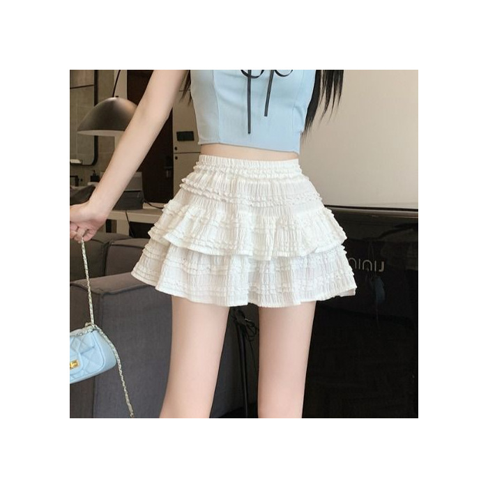 화이트 발레 스타일 퍼프 스커트 여성 여름 새로운 뜨거운 소녀 케이크 스커트 높은 허리 슬리밍 A 라인 레이스 스커트스토어 가기