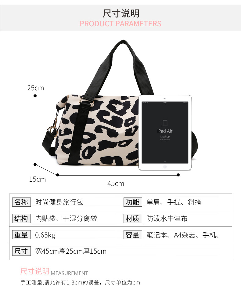 단거리 여행 가방 여성용 경량 방수 수납 수하물 가방 대용량 야외 출장 여행 가방 피트니스 가방