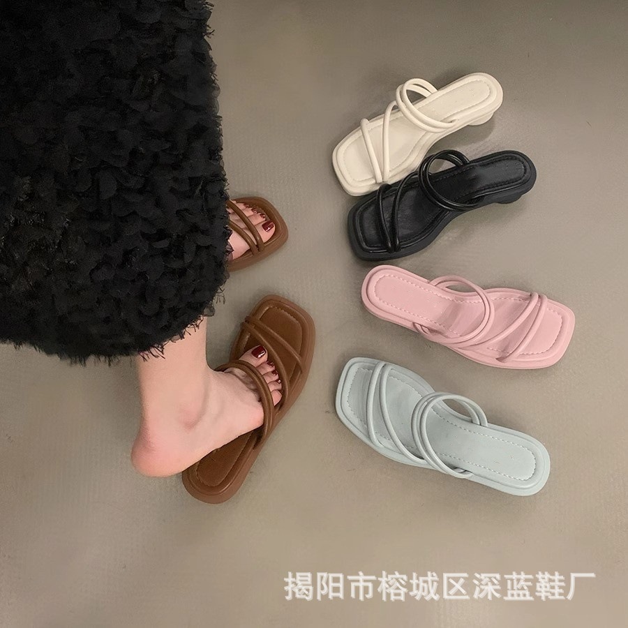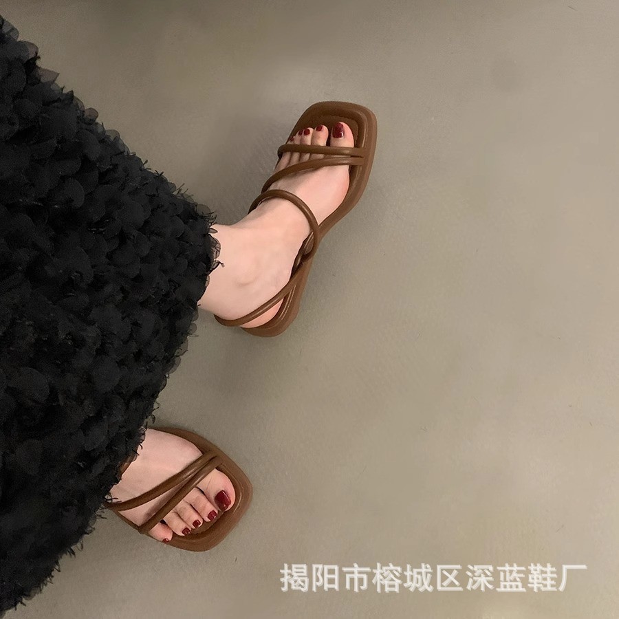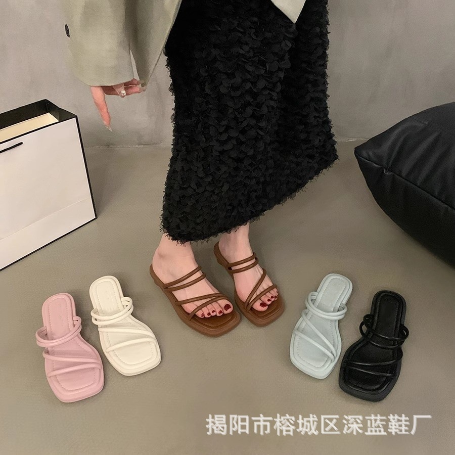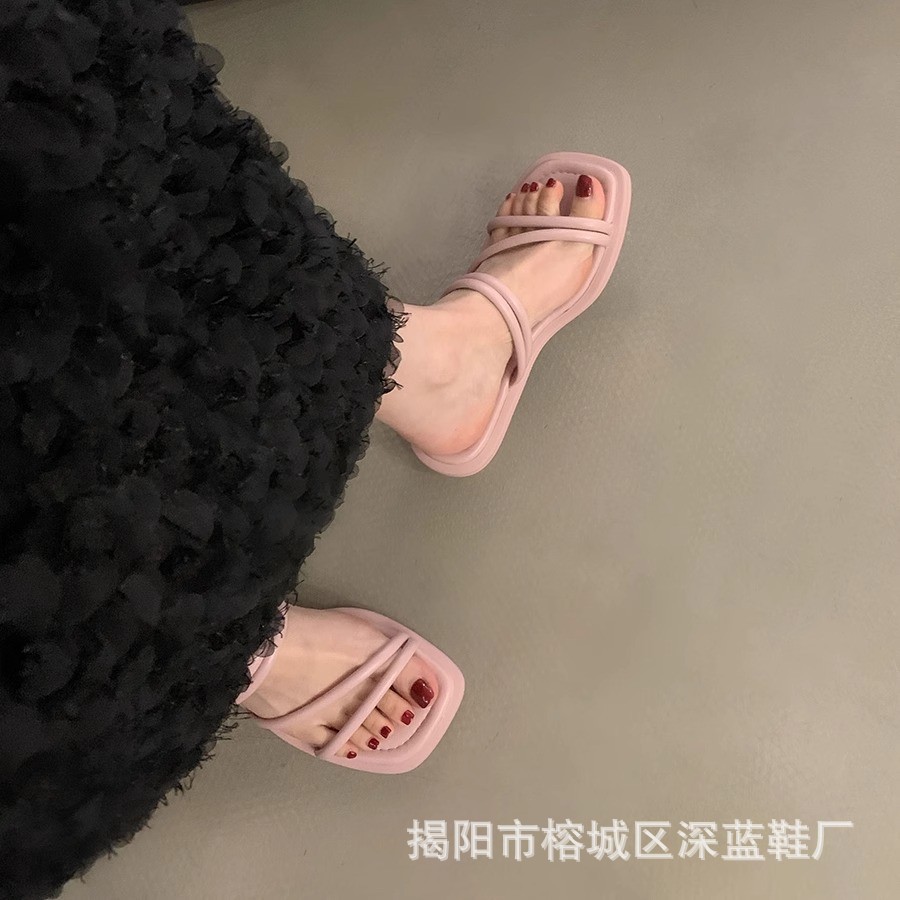 여성용 투웨어 프렌치 이브닝 샌들 2025 새로운 한국식 얇은 스트랩 요정 부드러운 두꺼운 굽 슬리퍼 여름 아우터웨어