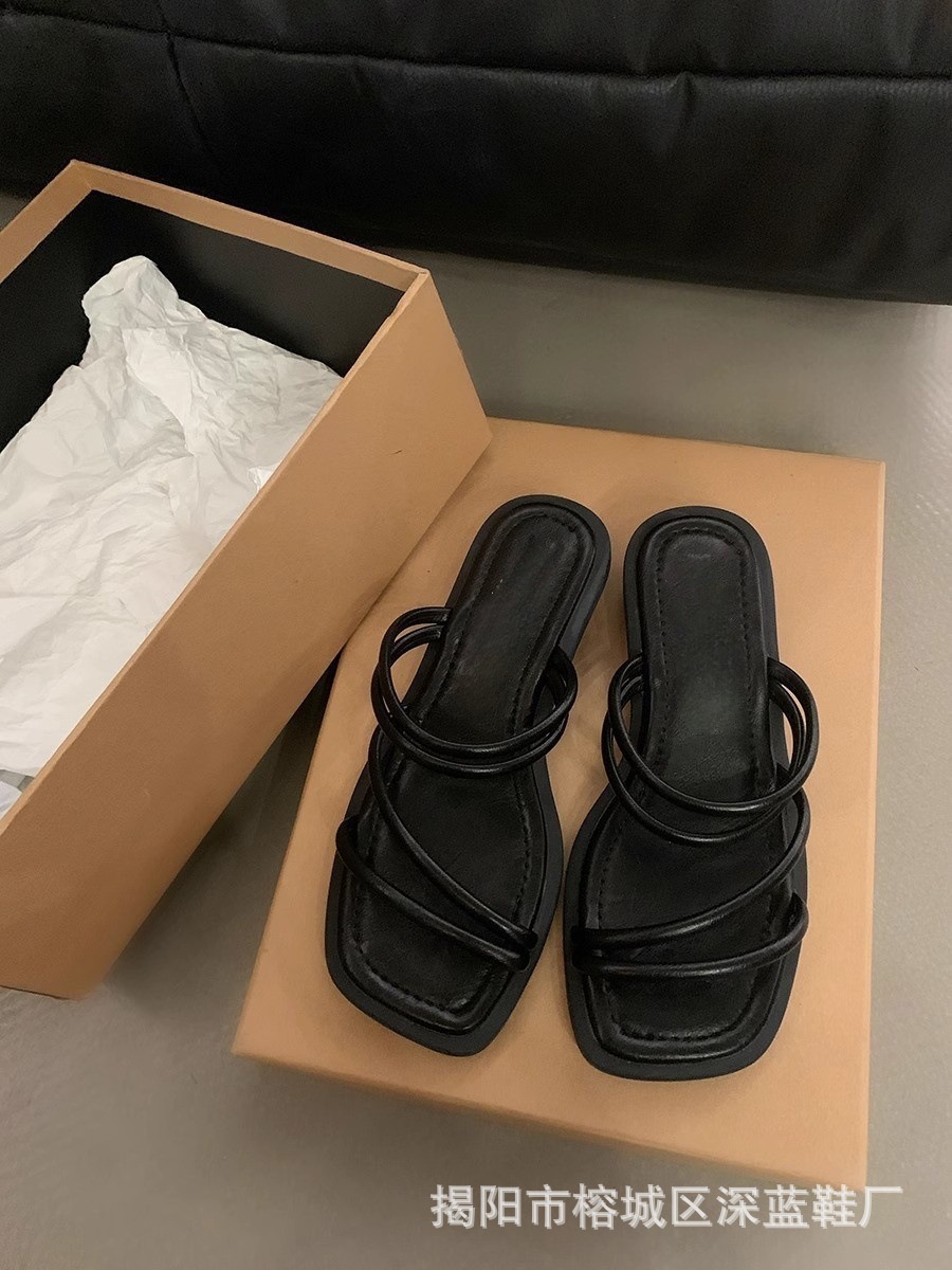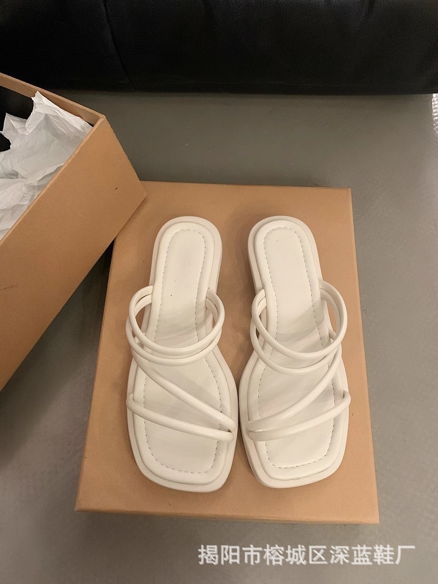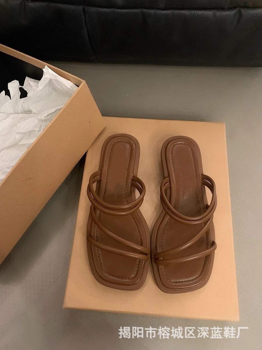 여성용 투웨어 프렌치 이브닝 샌들 2025 새로운 한국식 얇은 스트랩 요정 부드러운 두꺼운 굽 슬리퍼 여름 아우터웨어