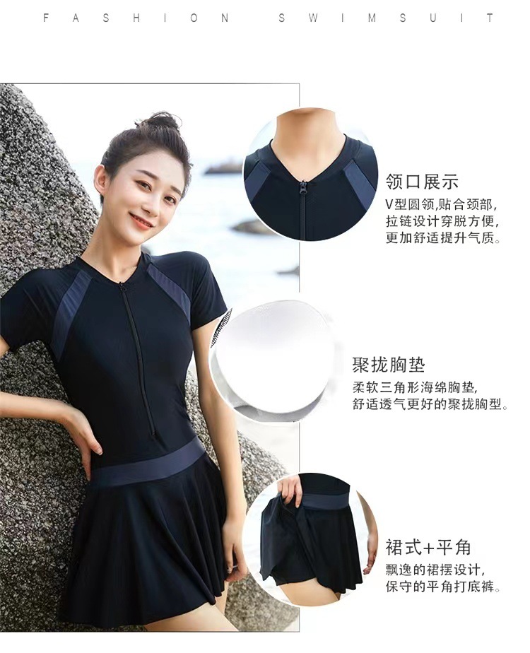 남성용 수영복, 비치 수영복, 원피스 수영복, 가슴 패드가 있는 여성용 보수적인 안전 바지, 노출 방지 수영복스토어 가기