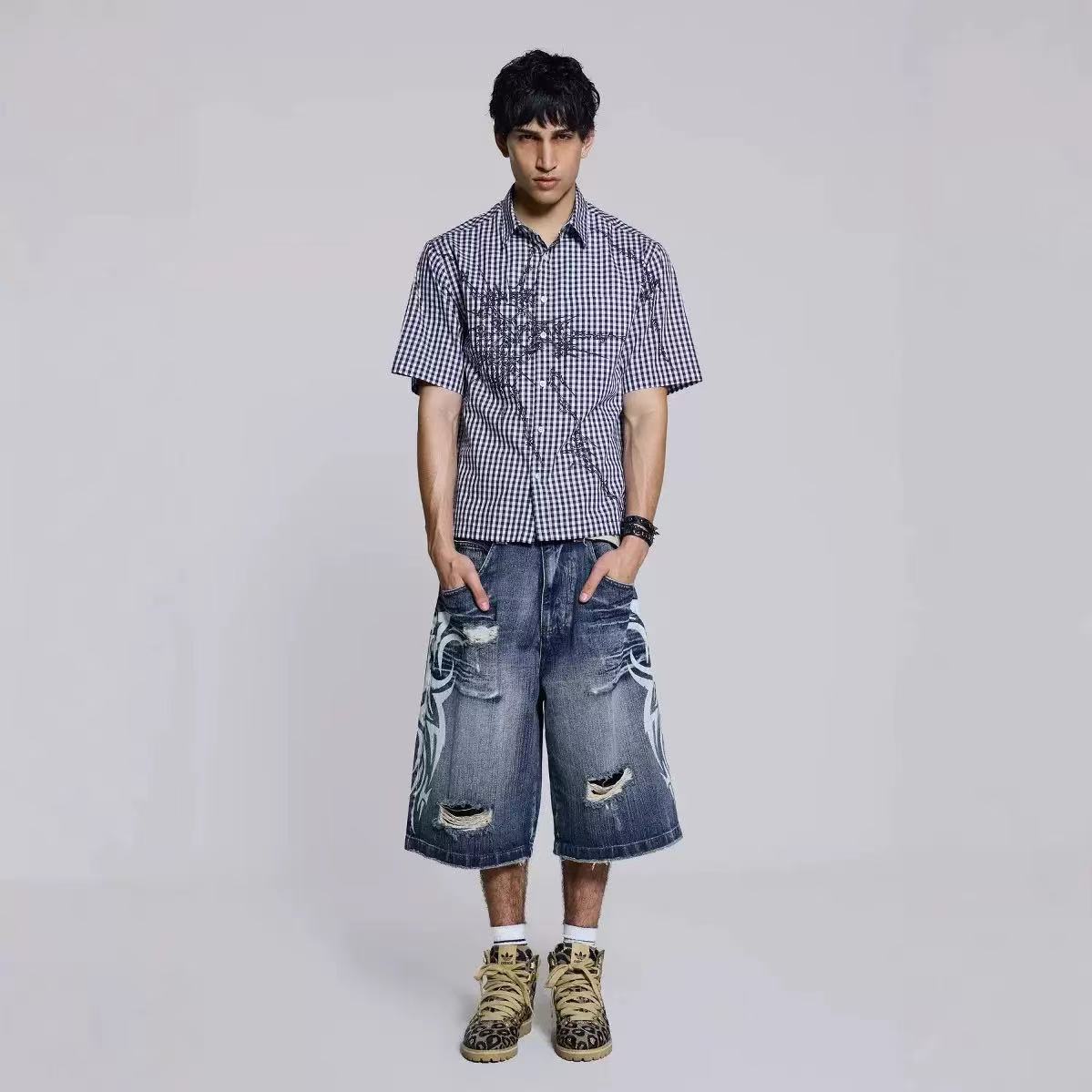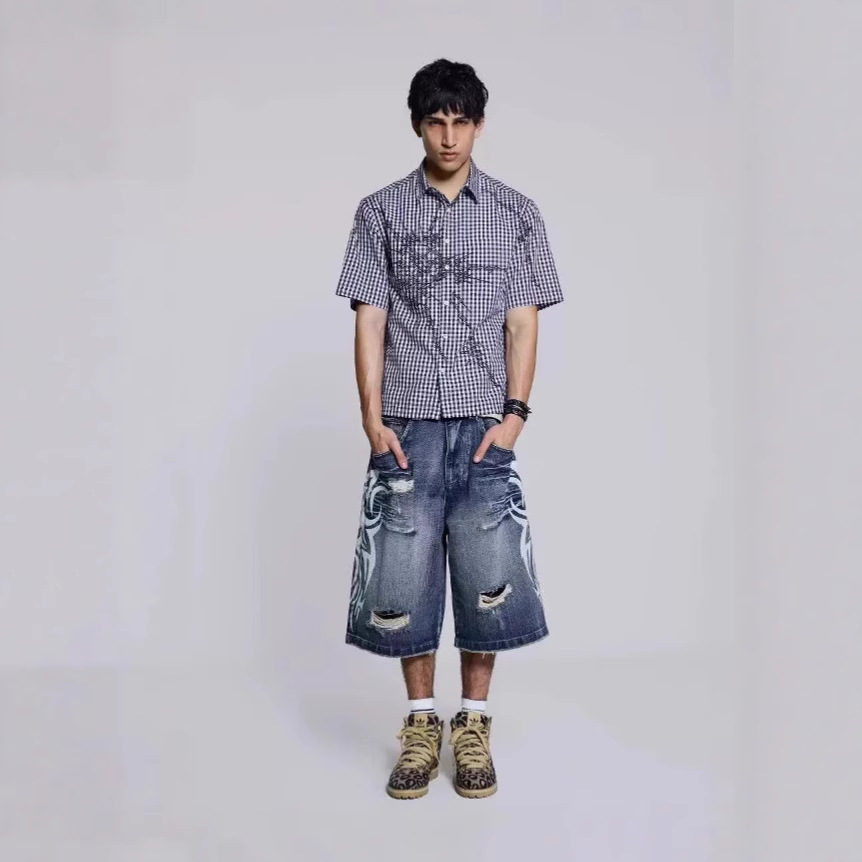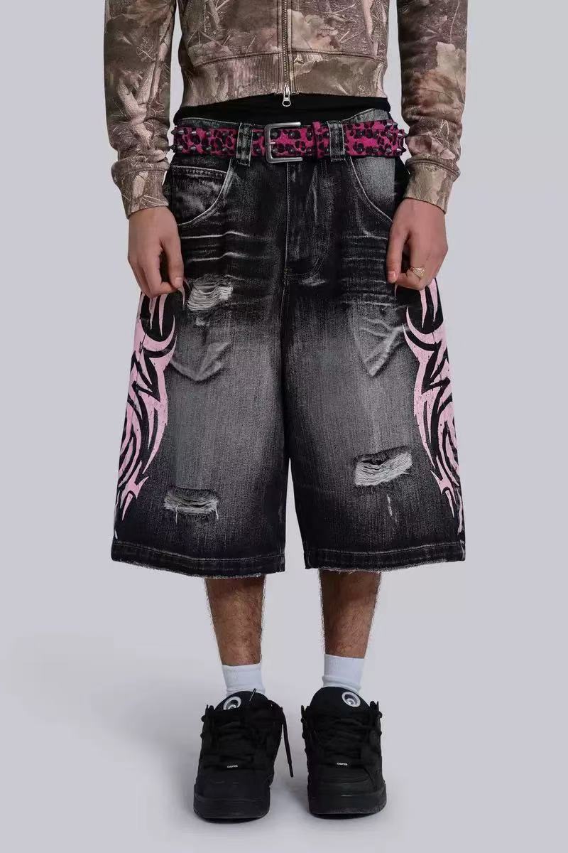 아메리칸 스타일 레트로 스트리트 청바지 남성 스트레이트-다리 느슨한 5 개 다리 바지 봄 인스 타 그램 인기 브랜드 하이 스트리트 짧은 바지스토어 가기