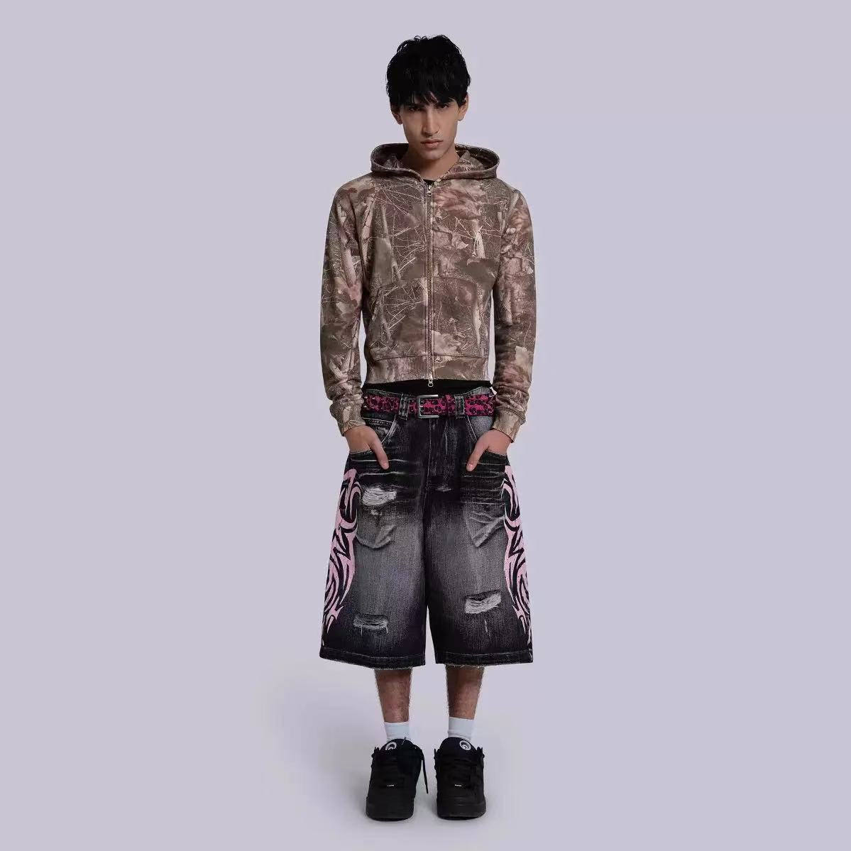 아메리칸 스타일 레트로 스트리트 청바지 남성 스트레이트-다리 느슨한 5 개 다리 바지 봄 인스 타 그램 인기 브랜드 하이 스트리트 짧은 바지