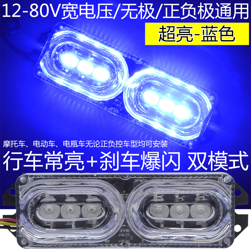 • 빨간색과 파란색, 주행 시 항상 켜짐 + 제동 플래시 듀얼 모드(12-85V에 적용 가능)