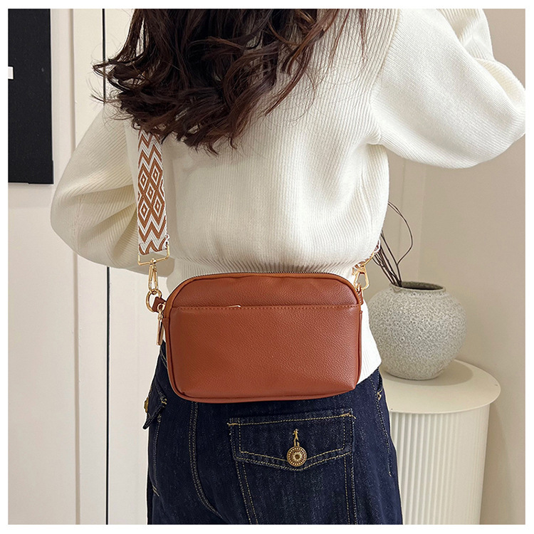 국경 2025 새로운 스타일의 메신저 백 여성 간단한 올 매치 소프트 가죽 작은 스퀘어 백 캐주얼 와이드 어깨 스트랩 싱글 숄더 백