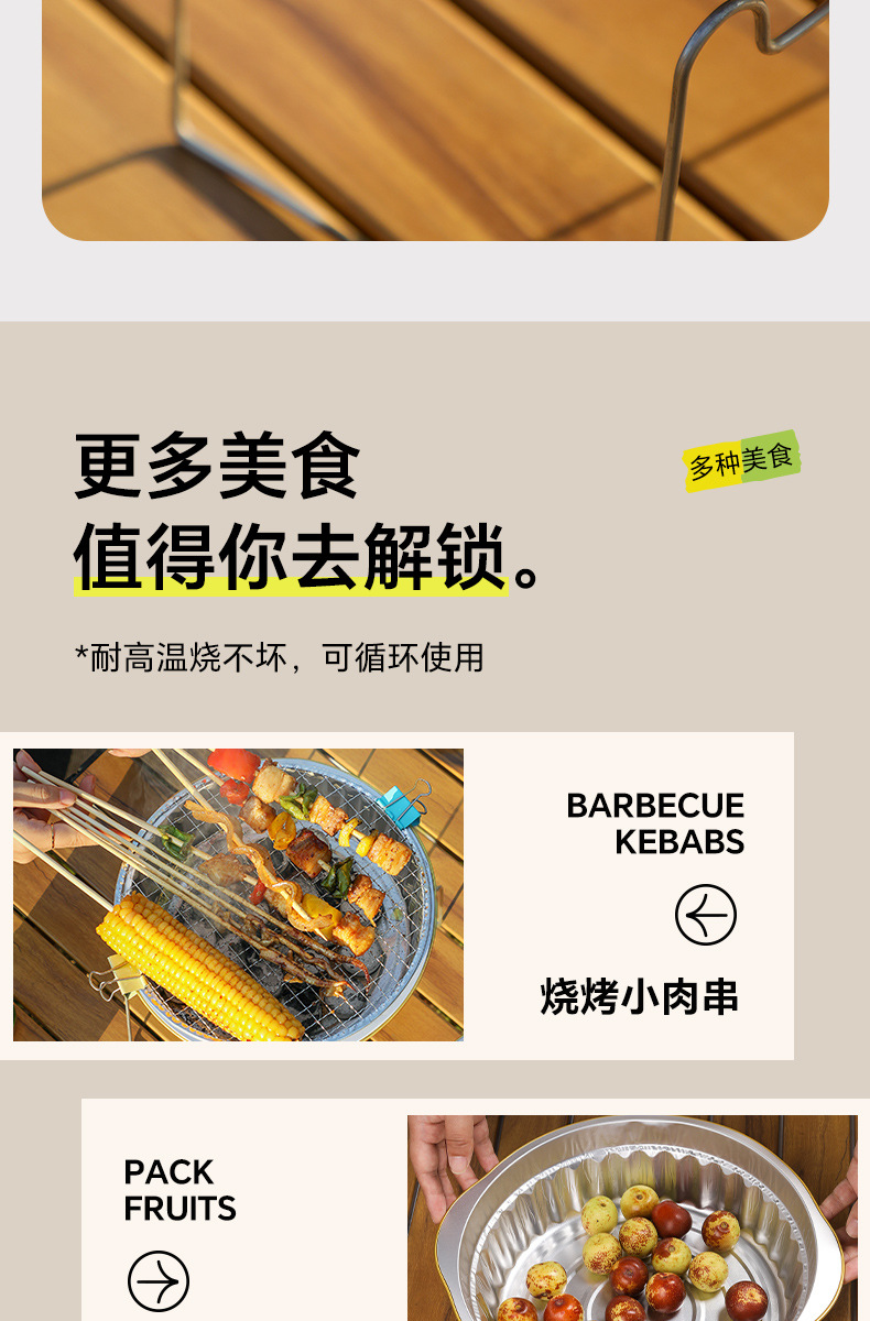 • [중형 세트] 2* 은박판 + 2* 바베큐 메쉬 + 스탠드 + 과일 숯 60개 + 음식