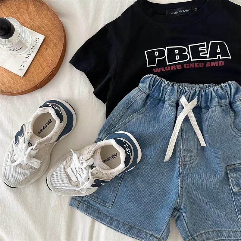 어린이 반바지 2025 여름 새 소년과 소녀 솔리드 컬러 포켓 도구 반바지 아기 암소스토어 가기