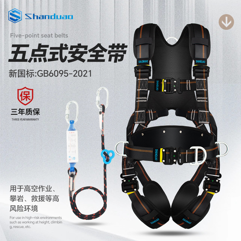 고공 작업을 위한 산토아오 풍력 발전 5점 안전벨트, 새로운 국가 표준 ZY 낙하 서스펜션 내마모성 안전 로프 세트스토어 가기