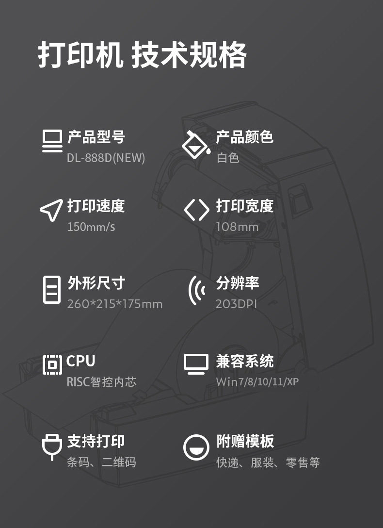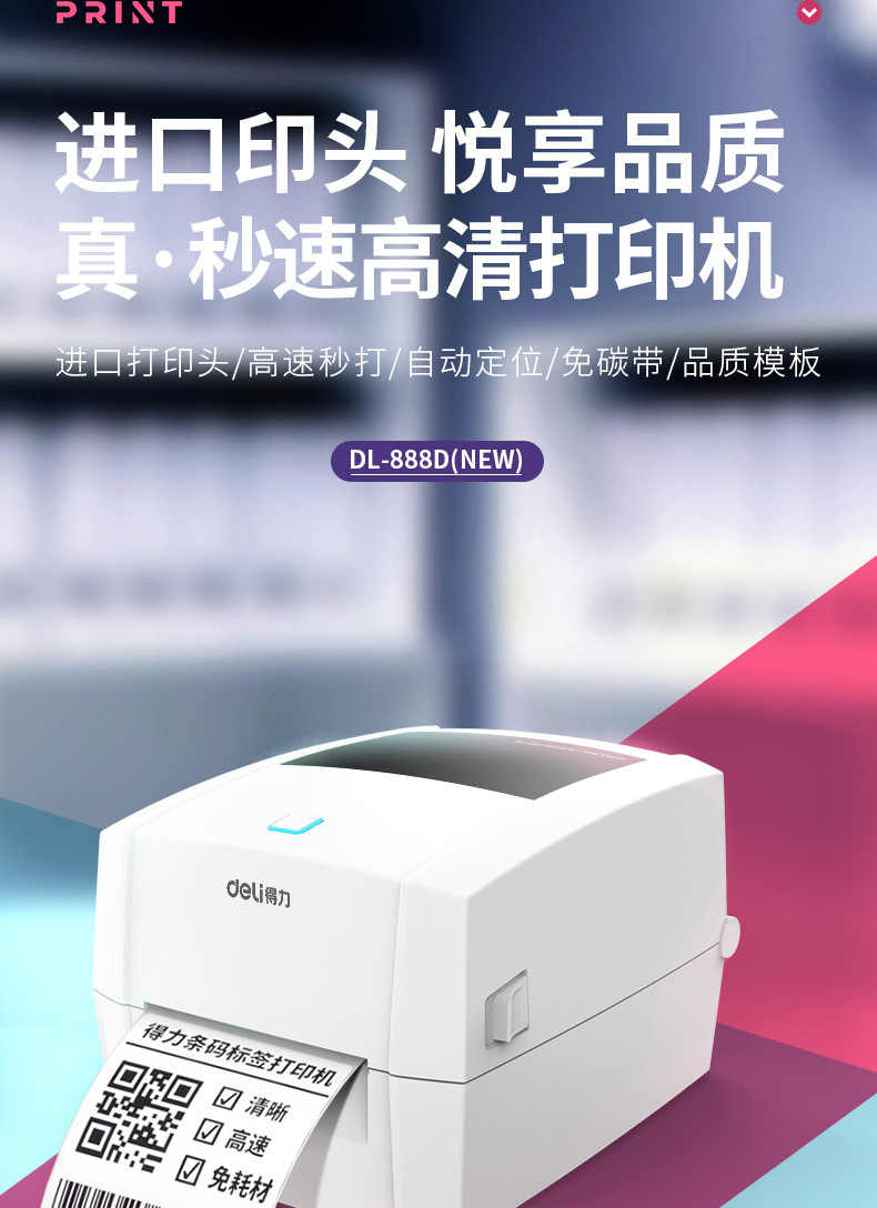 Deli DL-888D(NEW) 바코드 프린터 다기능 소형 바코드 열 자체 접착 스티커 라벨 기계스토어 가기