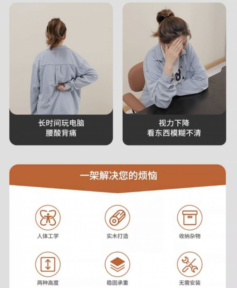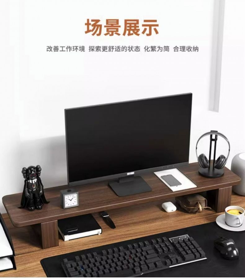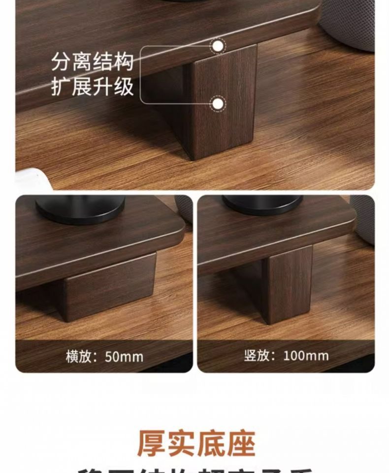 컴퓨터 모니터 높이 조절 스탠드 사무실 책상 선반 수납 선반 원목 수납 브래킷 호두나무 지지대