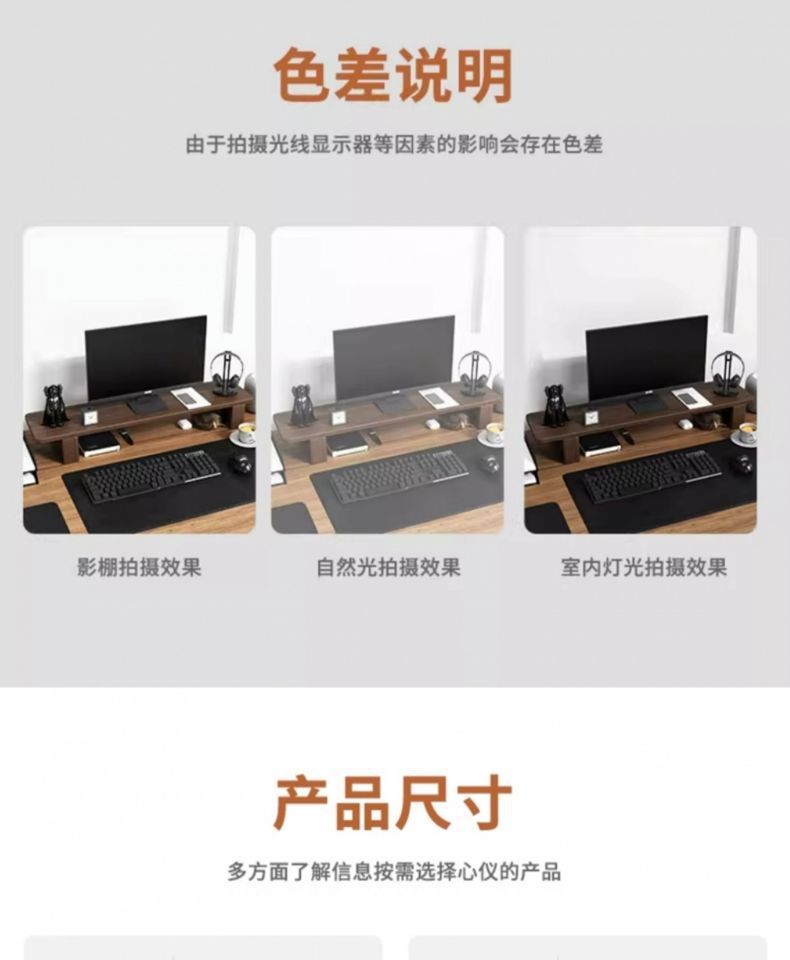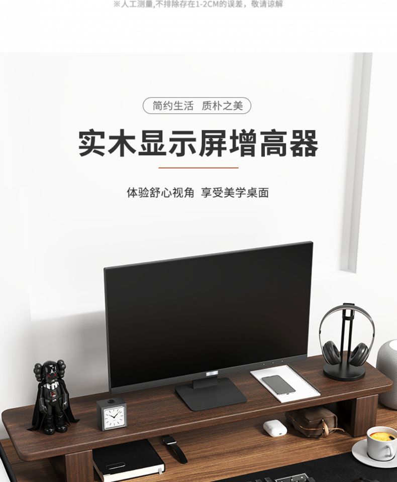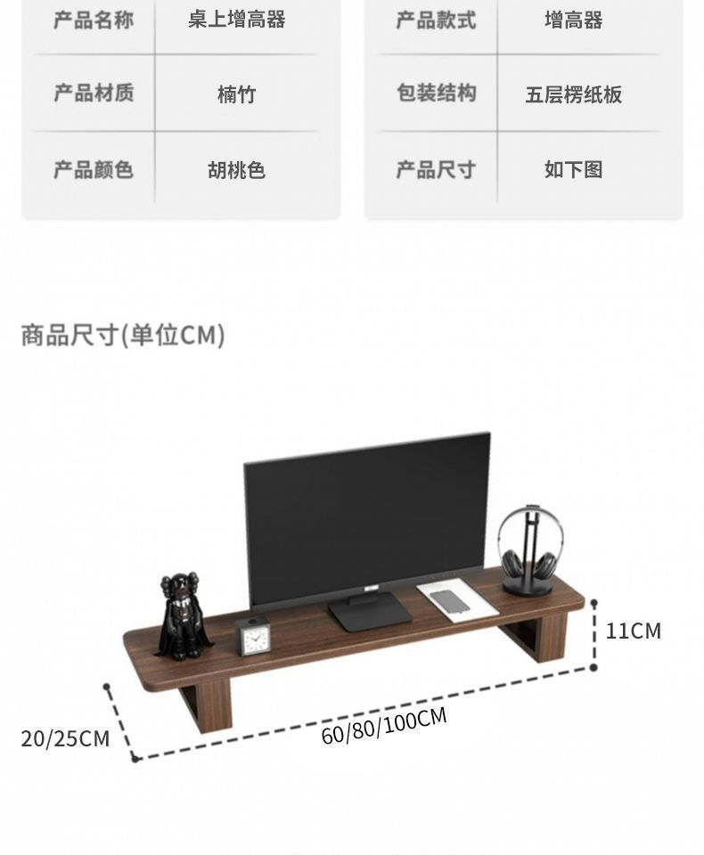 컴퓨터 모니터 높이 조절 스탠드 사무실 책상 선반 수납 선반 원목 수납 브래킷 호두나무 지지대스토어 가기