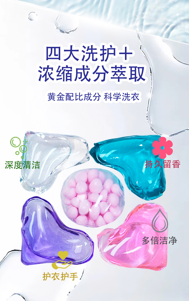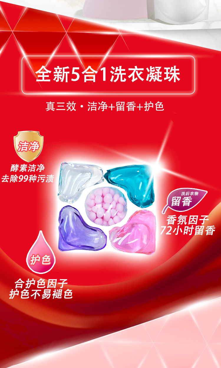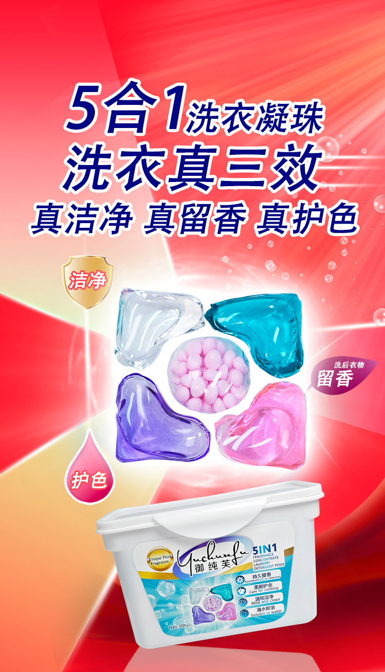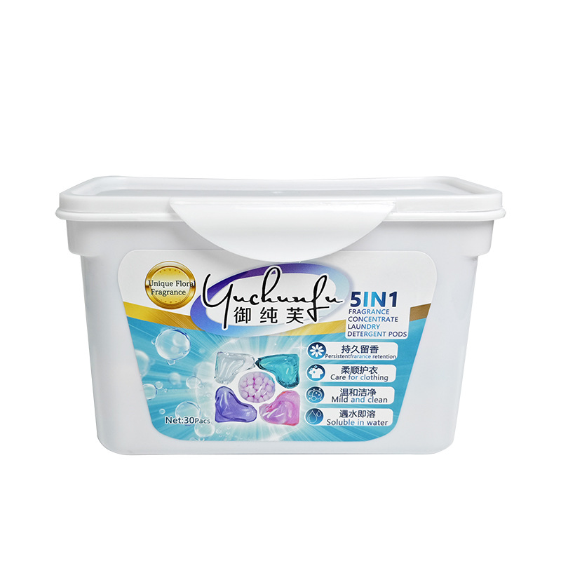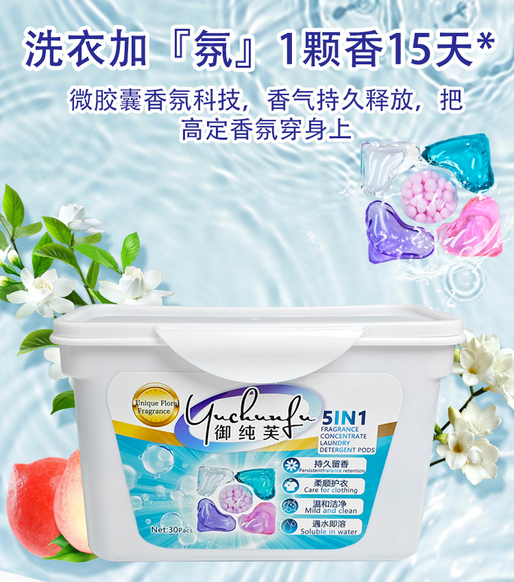 Yuchunfu 농축 5 챔버 세탁 비즈 깨끗하고 오래 지속되는 향기 크로스 보더 영어 버전 5-in-1 세탁 비즈 제조업체스토어 가기
