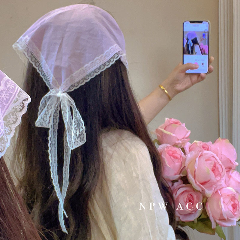 달콤한 봄과 여름 Tulle Baotou 작은 광장 스카프 인터넷 인기 달콤한 컬러 실크 스카프 여성용 해변 햇빛 스카프스토어 가기