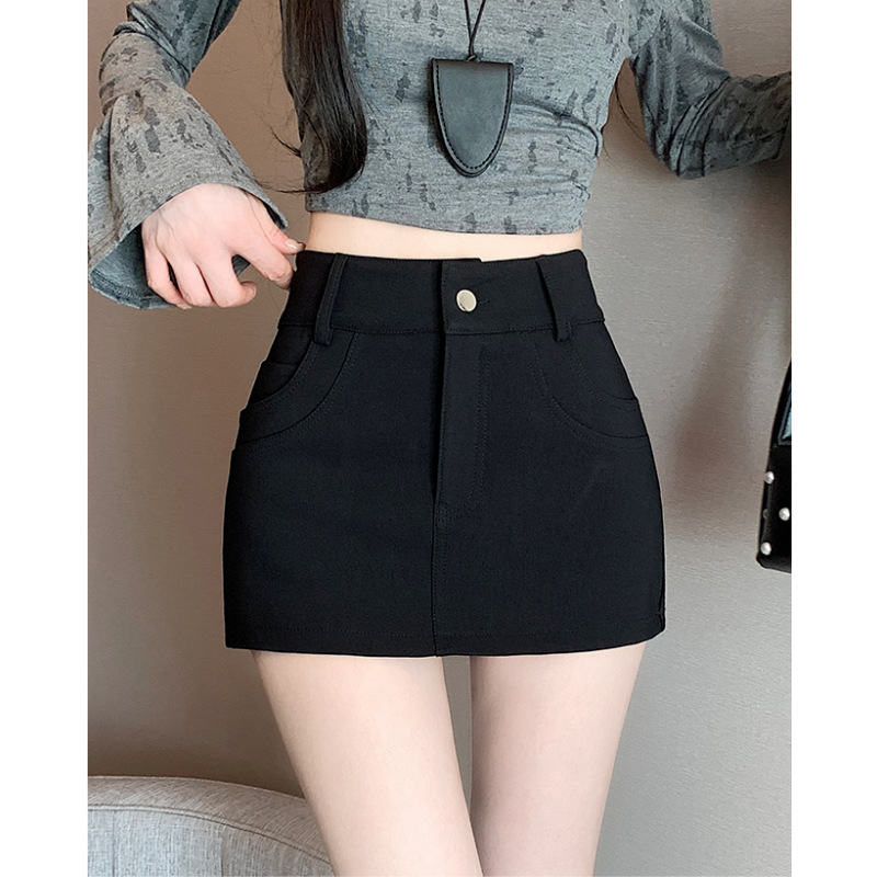 핫걸 스커트, 여성용 스몰 슈트 스커트, 봄 하이웨이스트 노출 방지 신축성 있는 A라인 힙 커버 미니 스커트